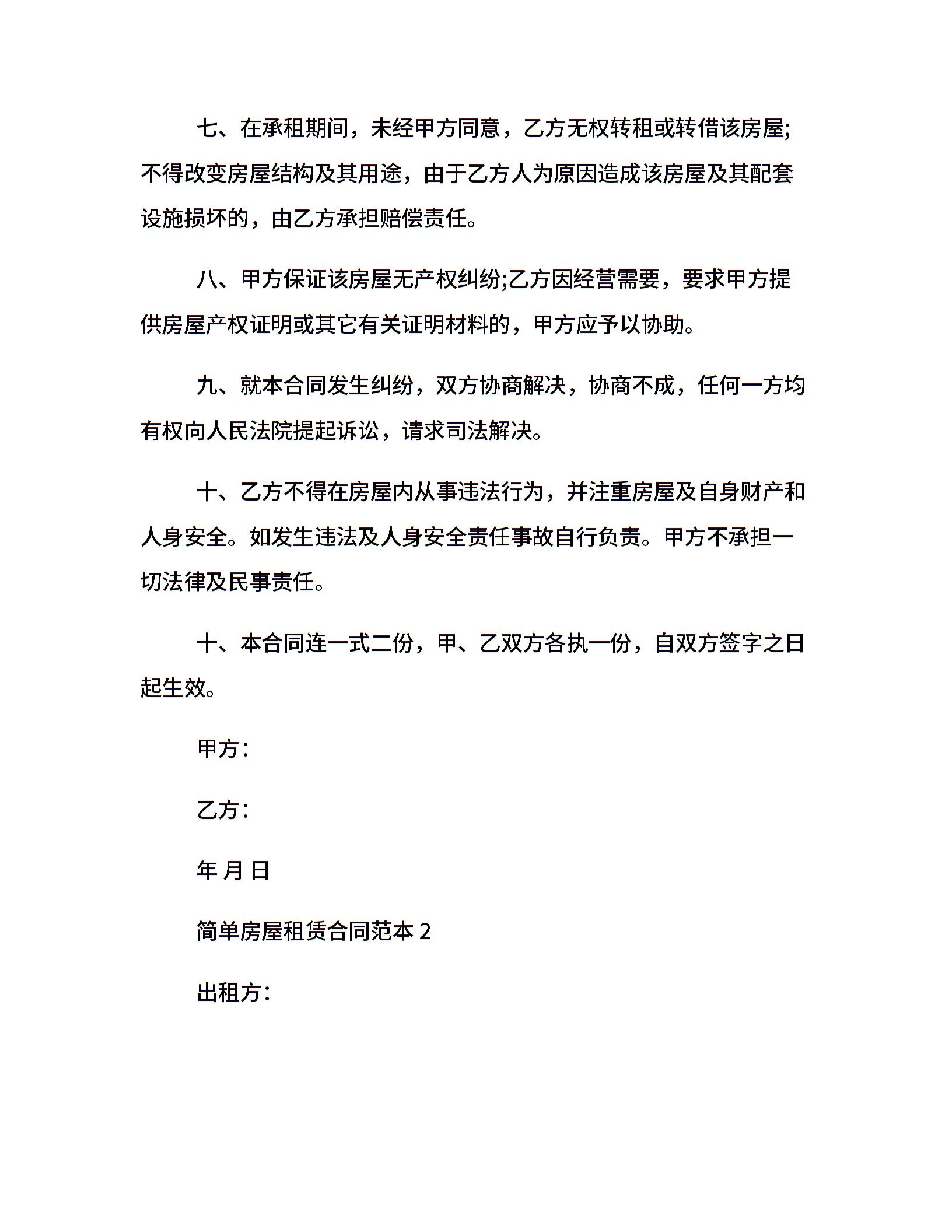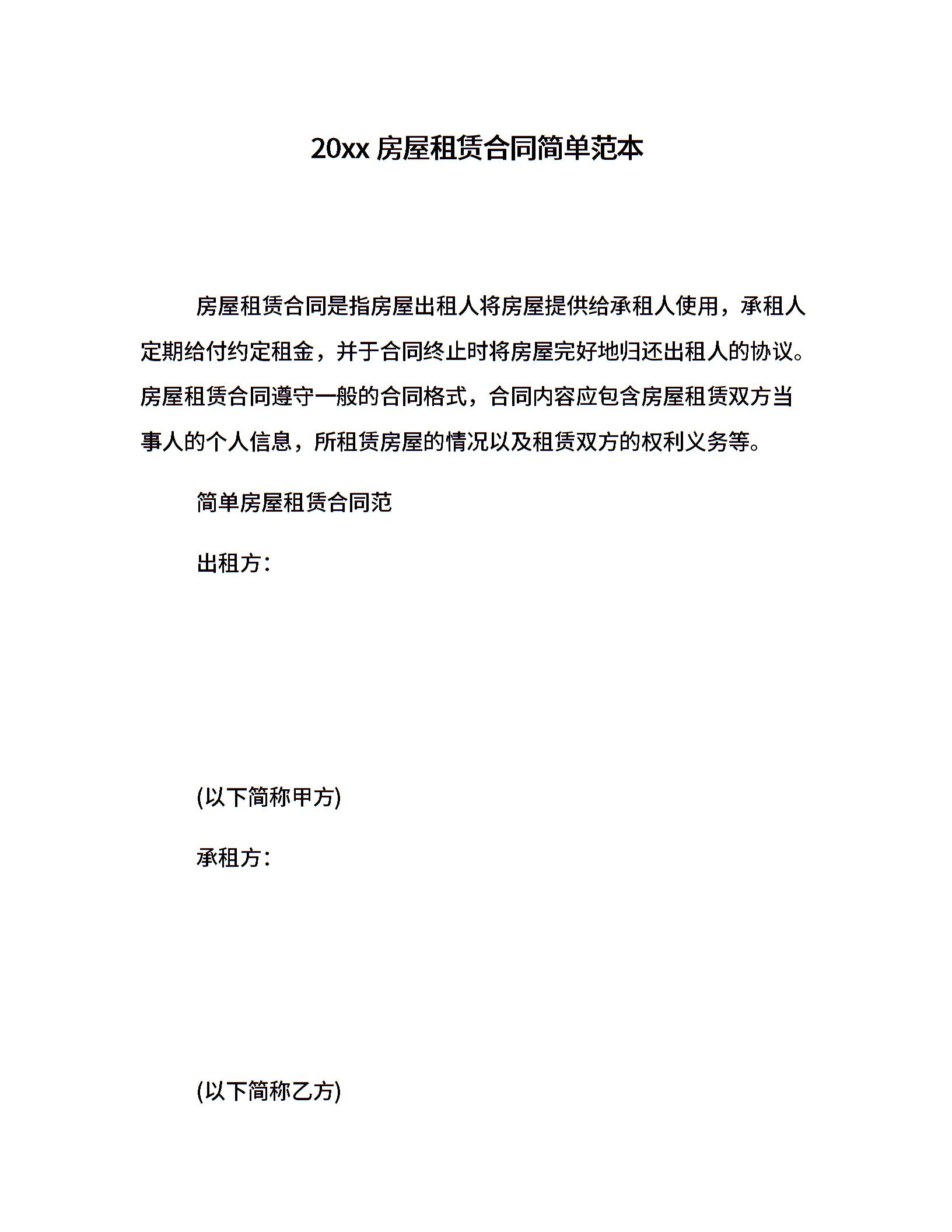 20xx房屋租赁合同简单范本