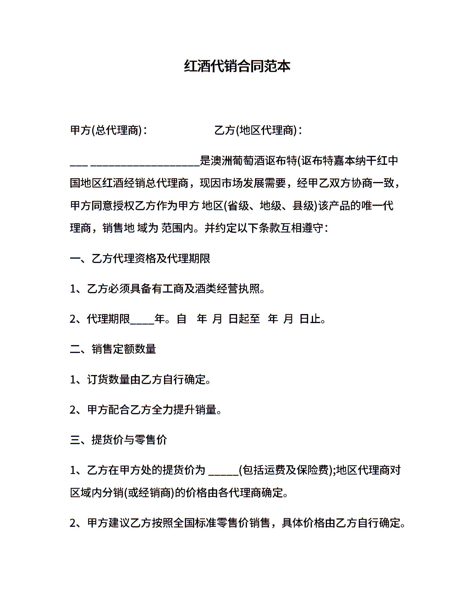 红酒代销合同范本