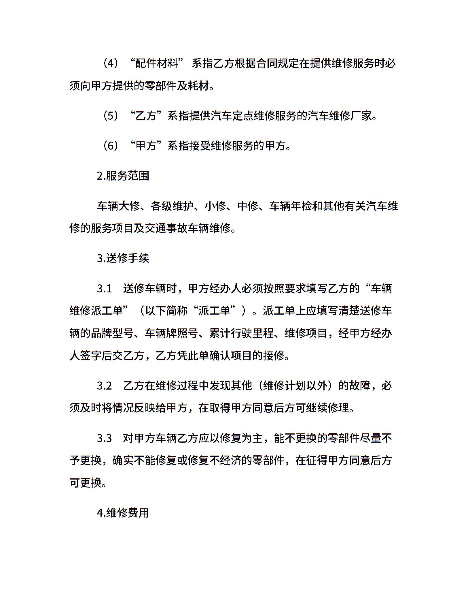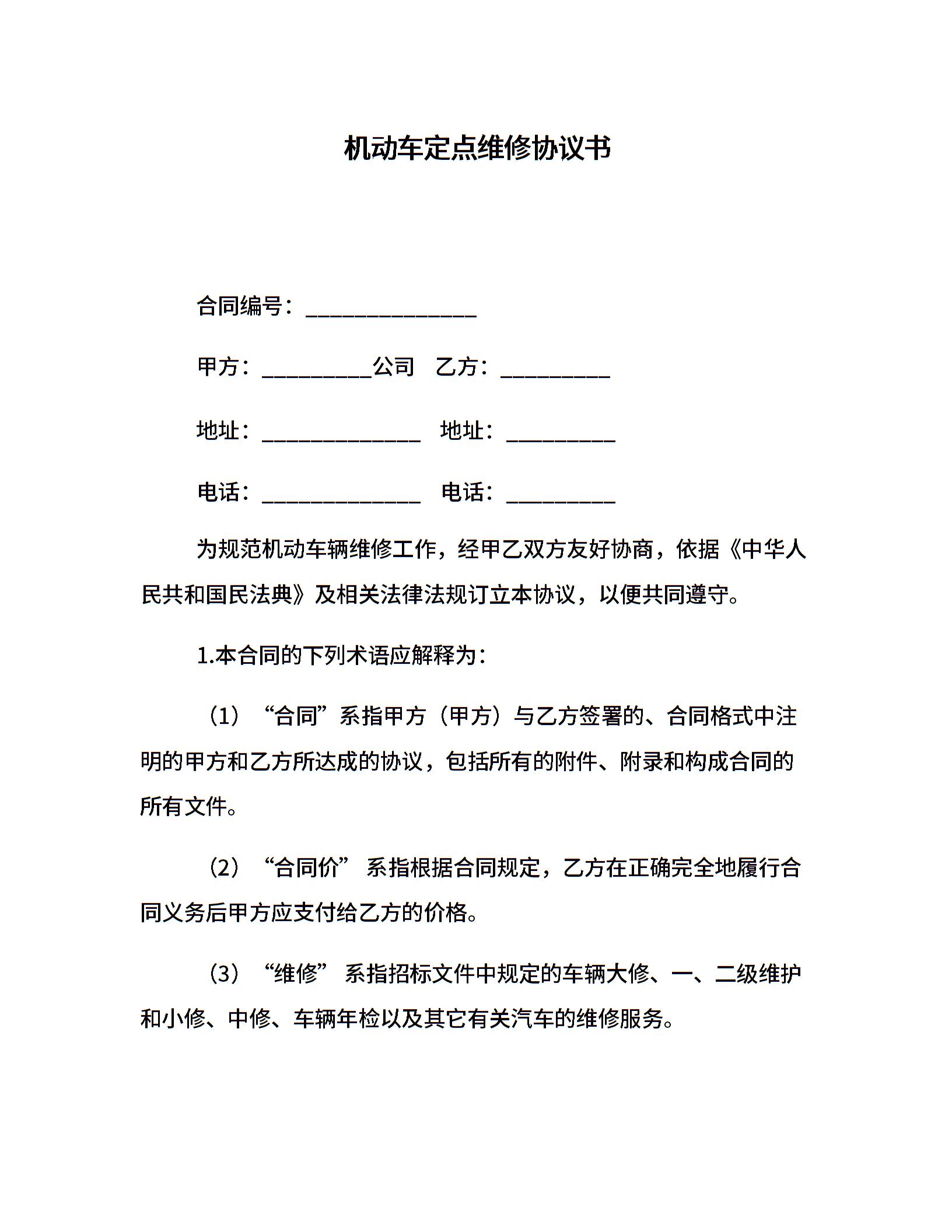 机动车定点维修协议书