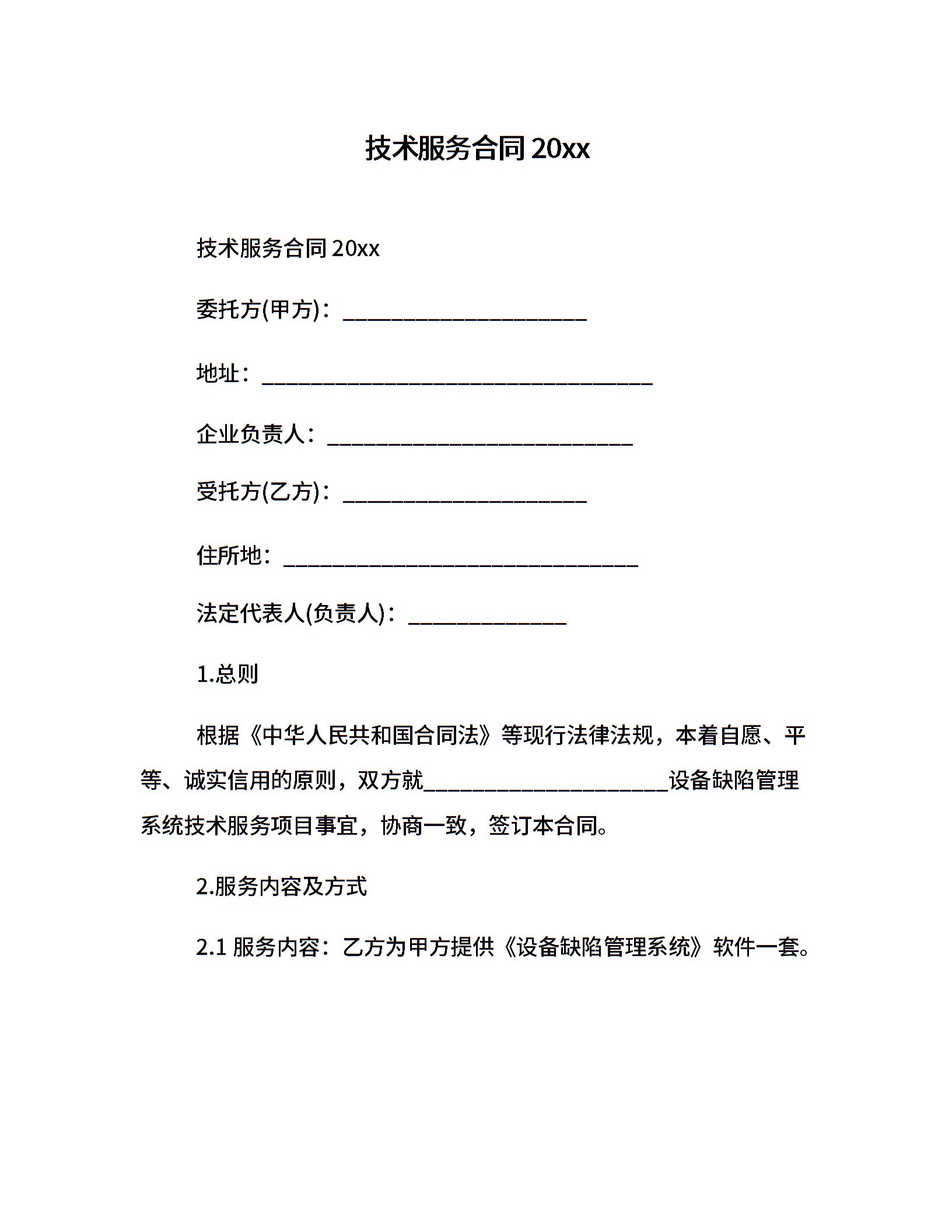 技术服务合同20xx