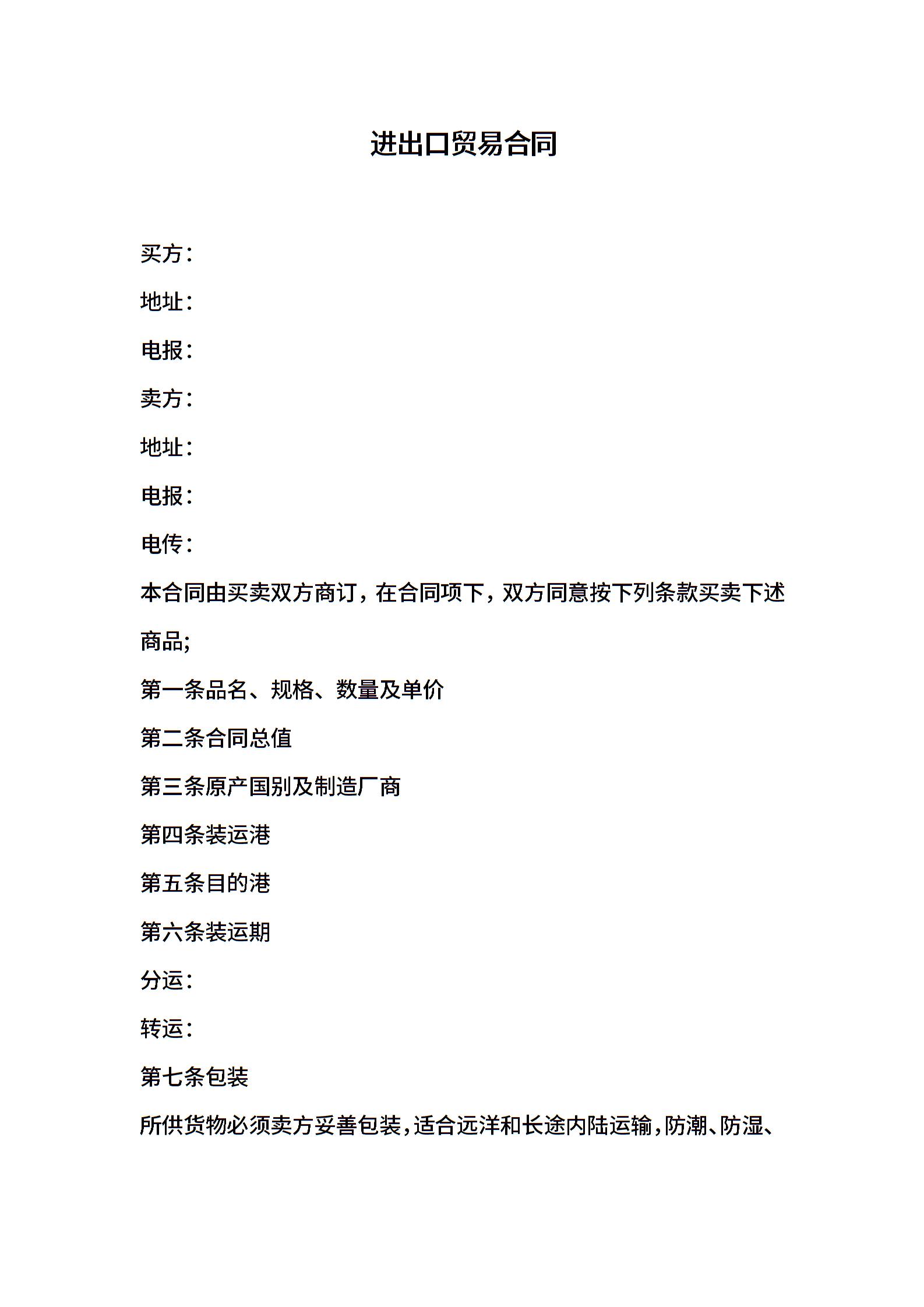 当前位置:量子办公 > 合同模板 > 贸易合同 >