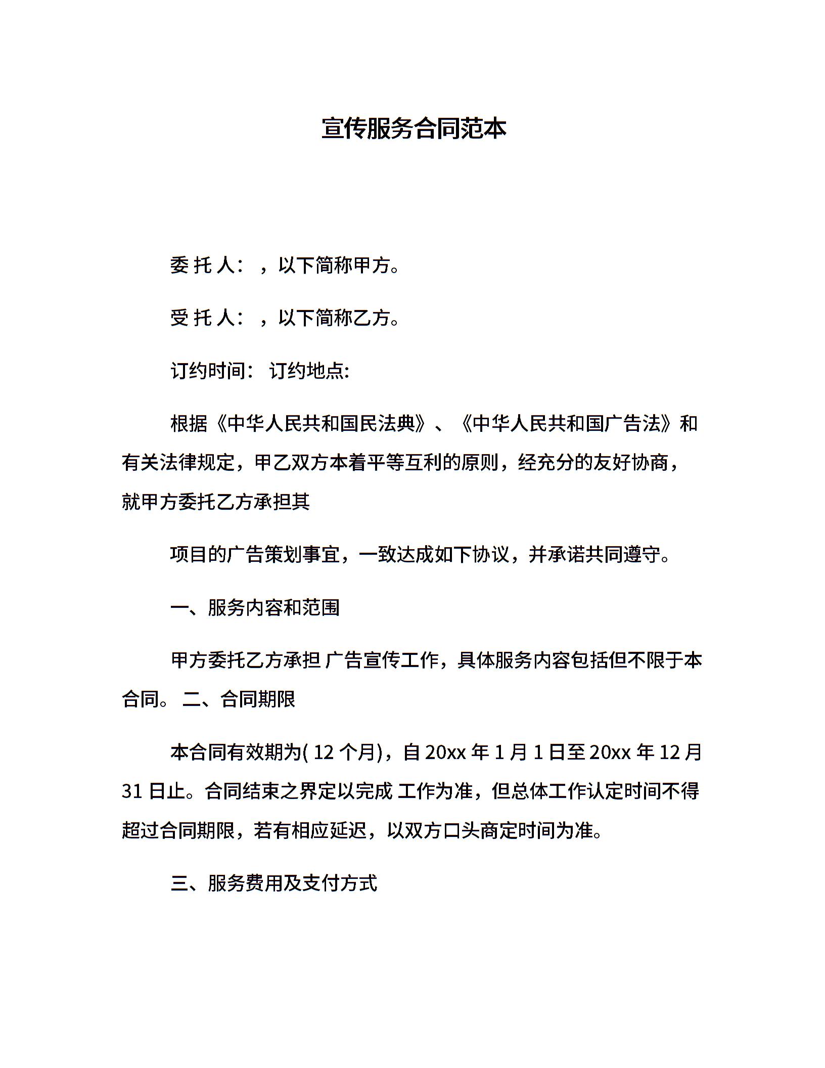 宣传服务合同范本