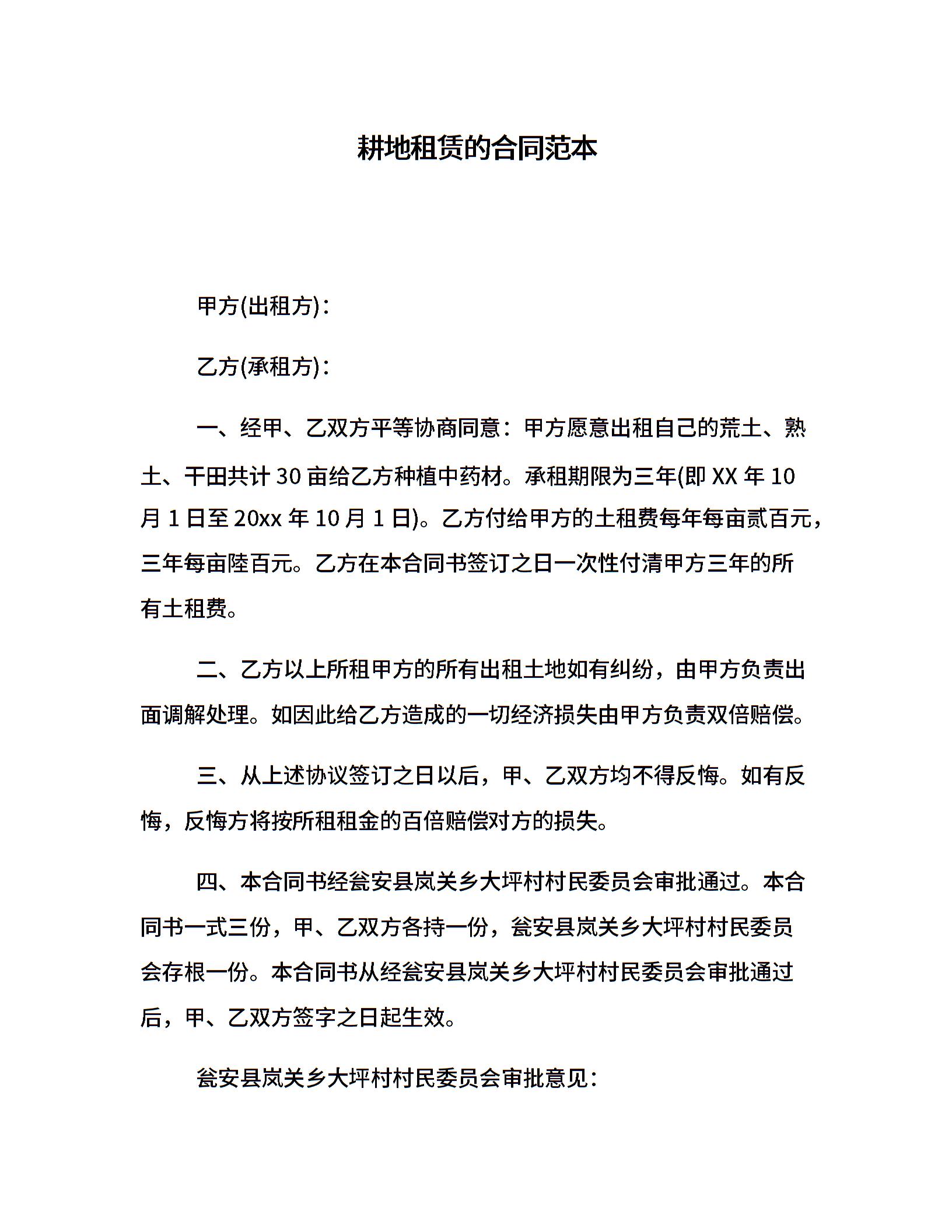 耕地租赁的合同范本
