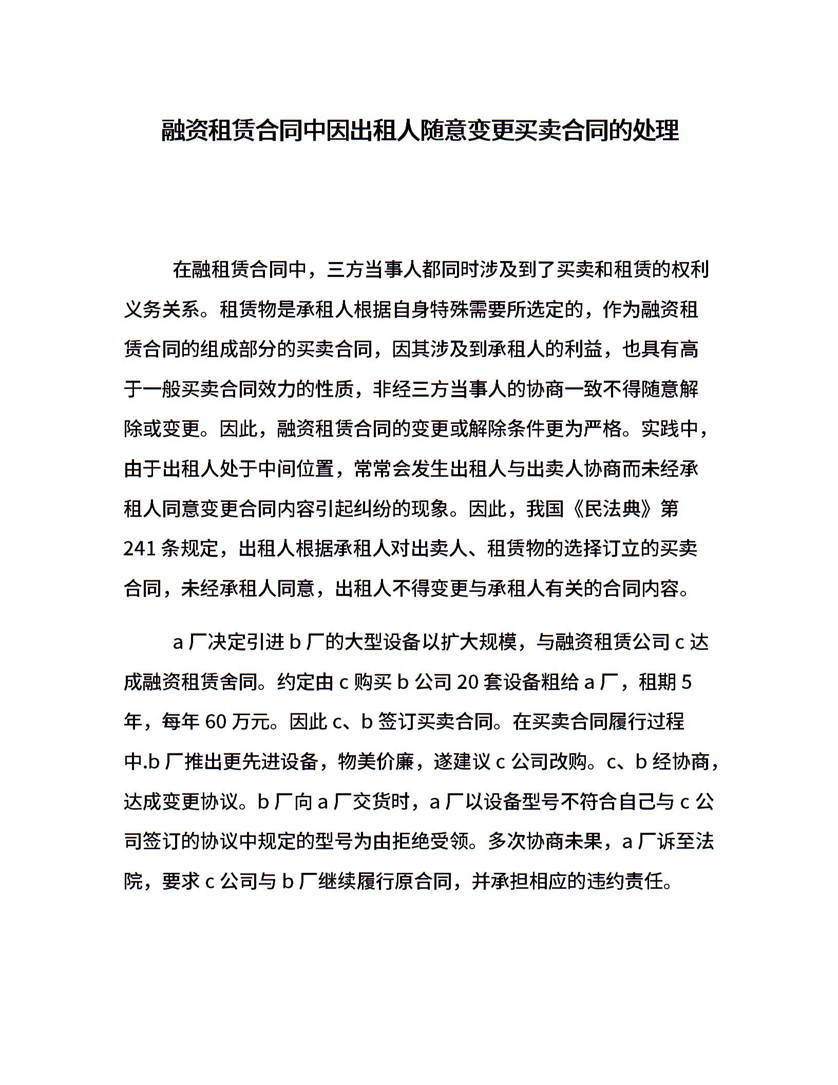 融资租赁合同中因出租人随意变更买卖合同的处理