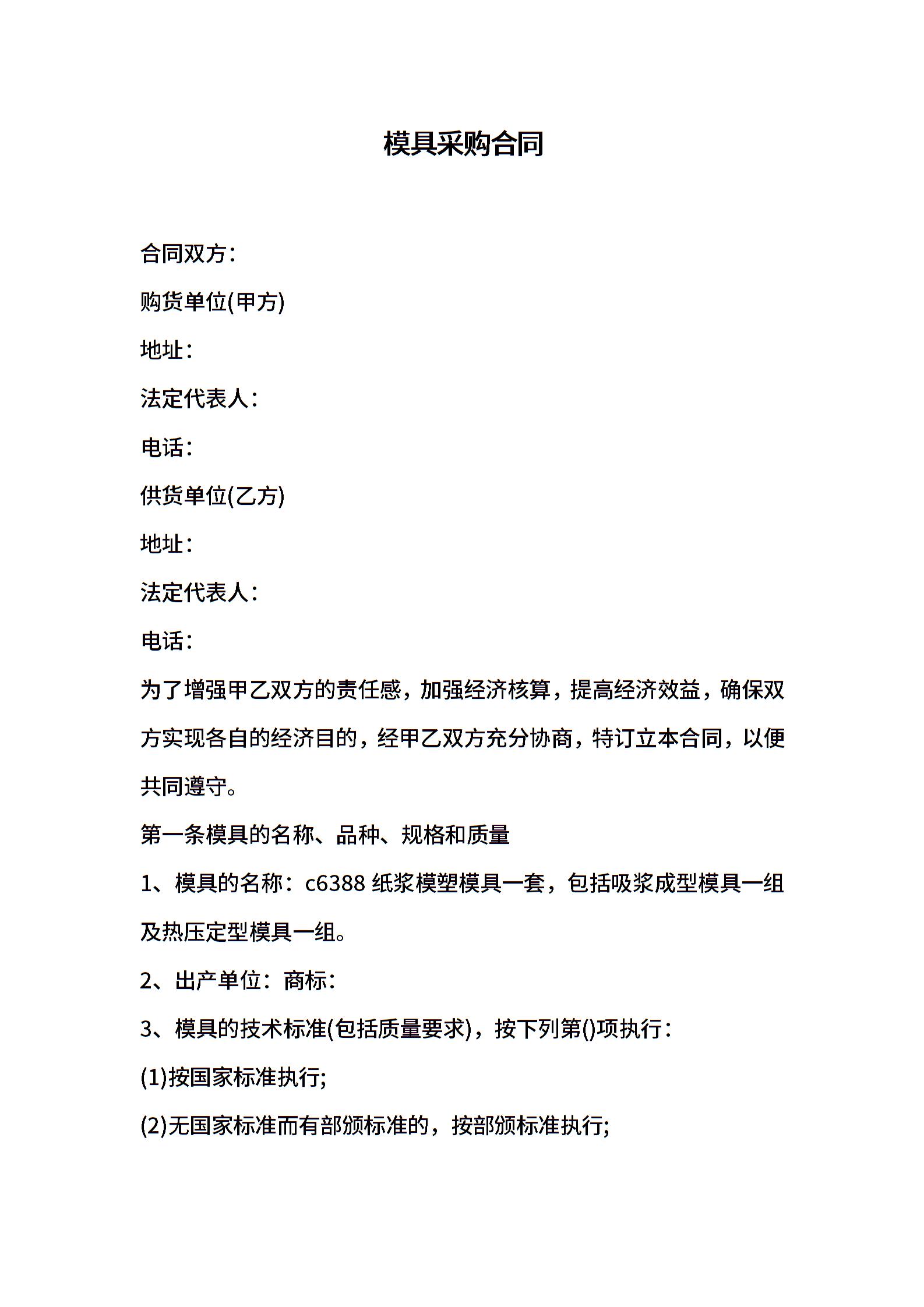 模具采购合同