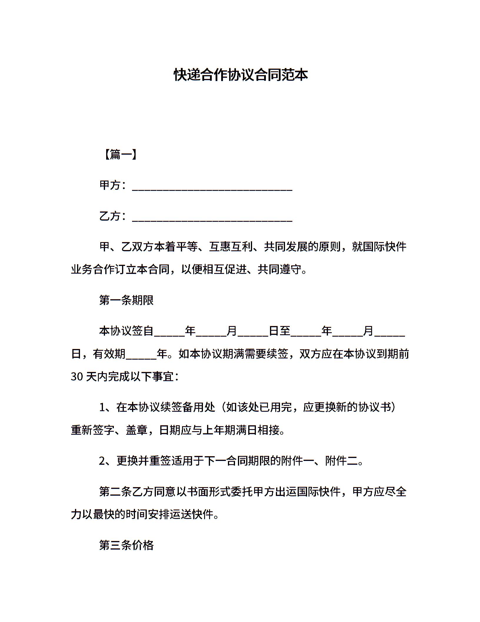 快递合作协议合同范本