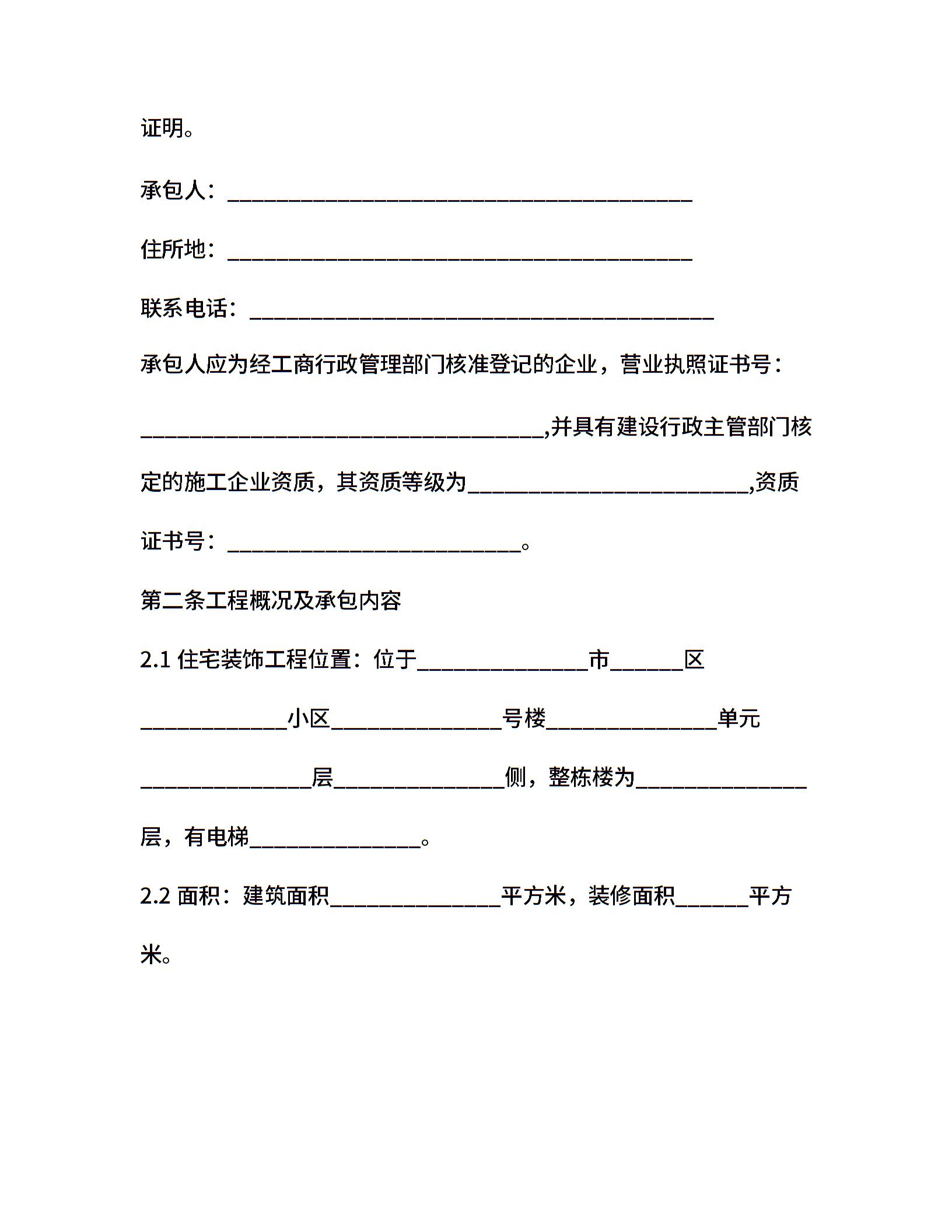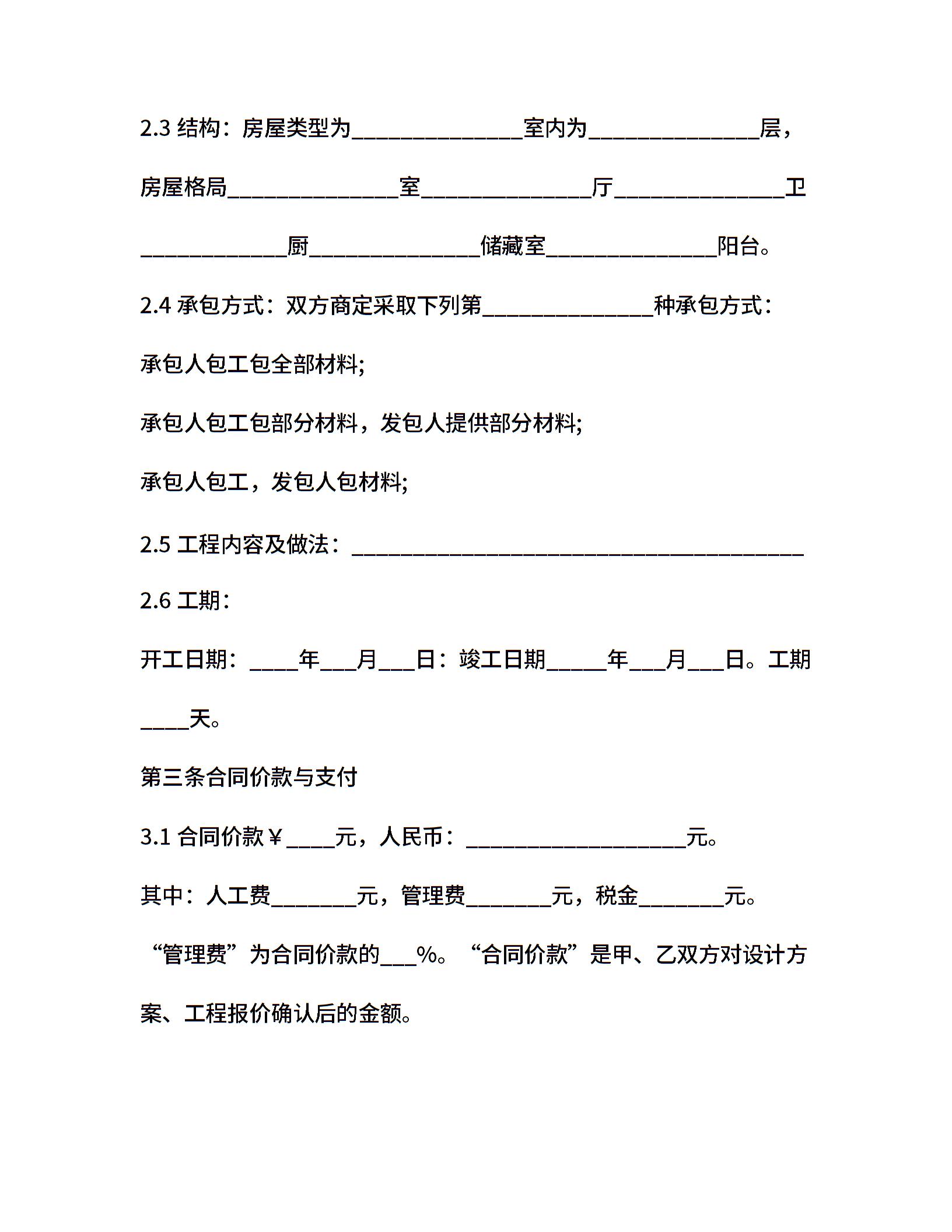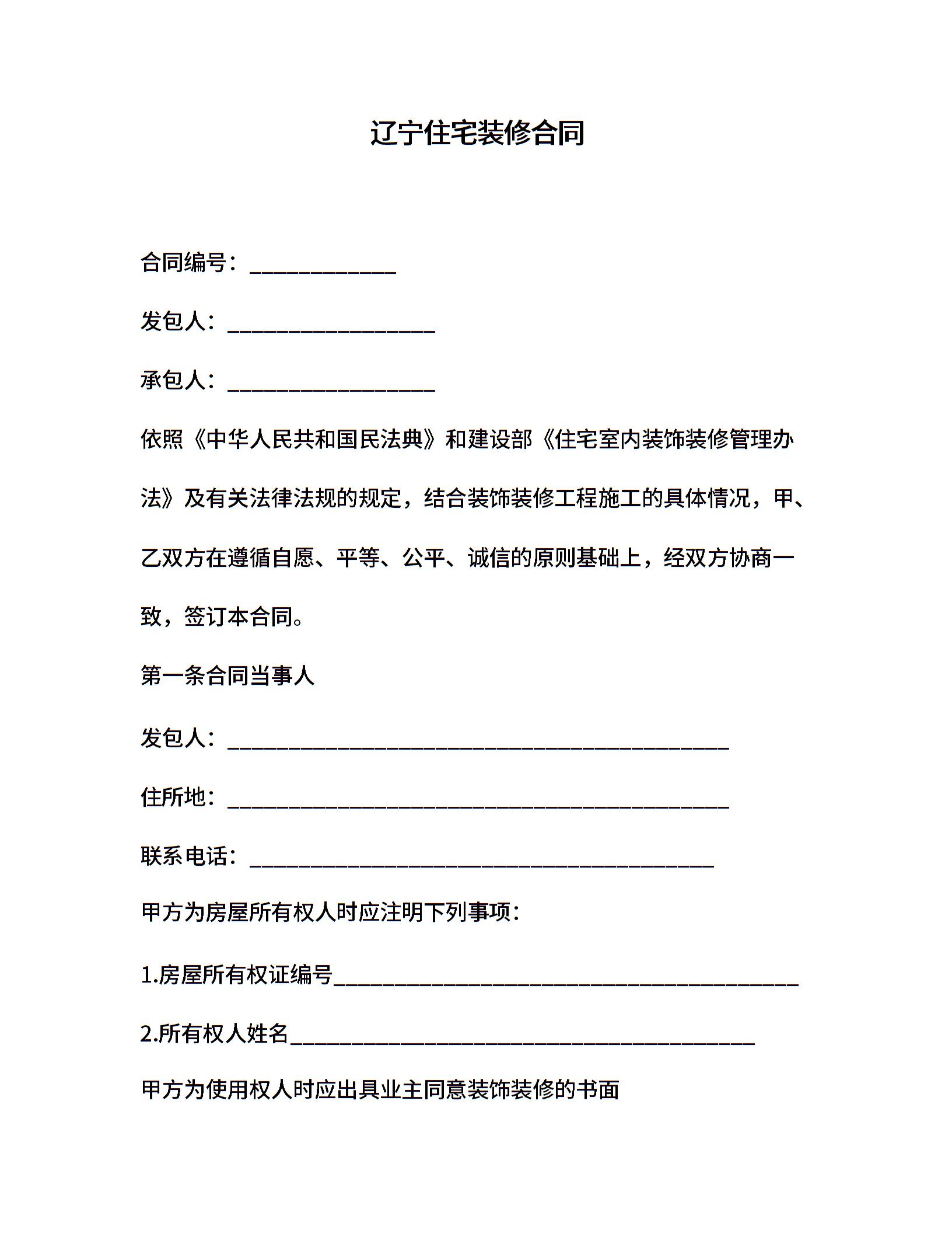 辽宁住宅装修合同