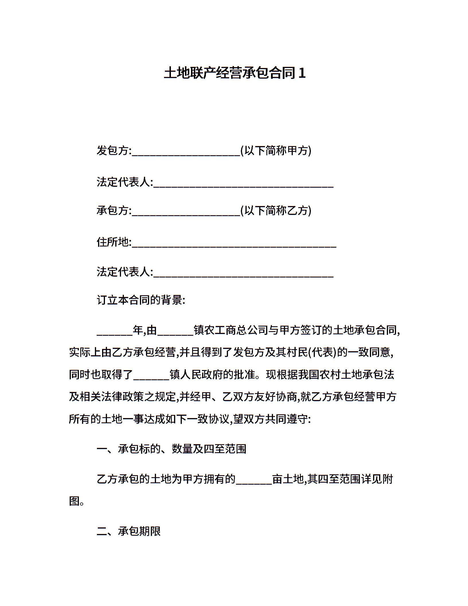 土地联产经营承包合同1