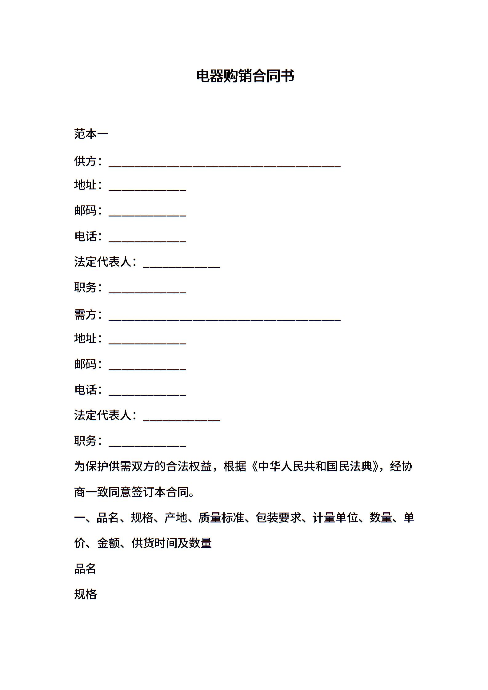 电器购销合同书