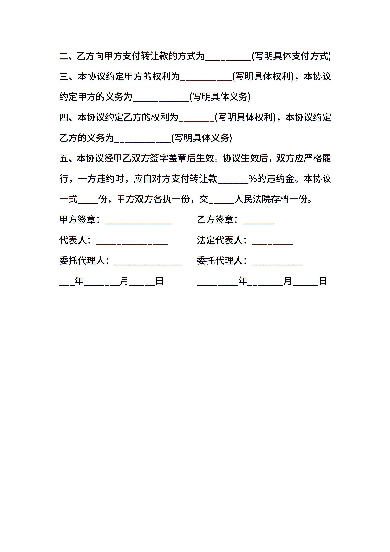 当前位置:量子办公 > 合同模板 > 转让合同 >