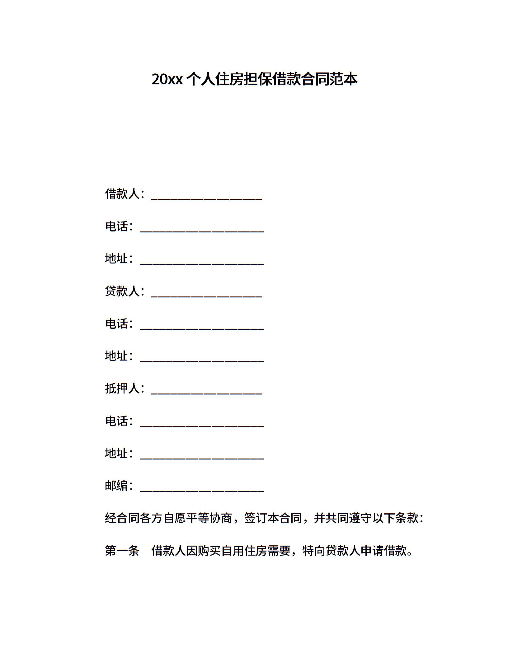 20xx个人住房担保借款合同范本