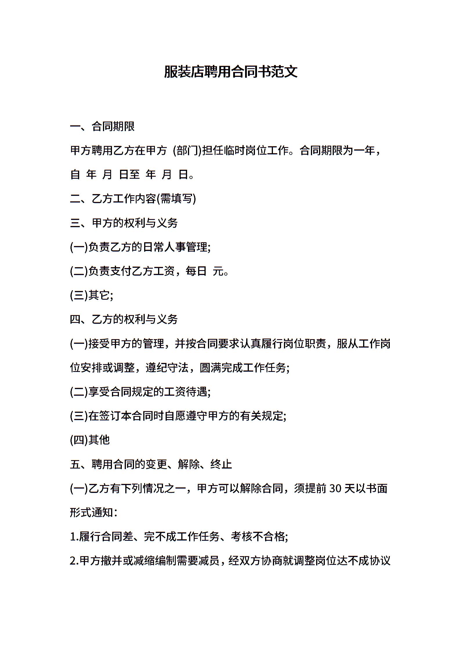 服装店聘用合同书范文