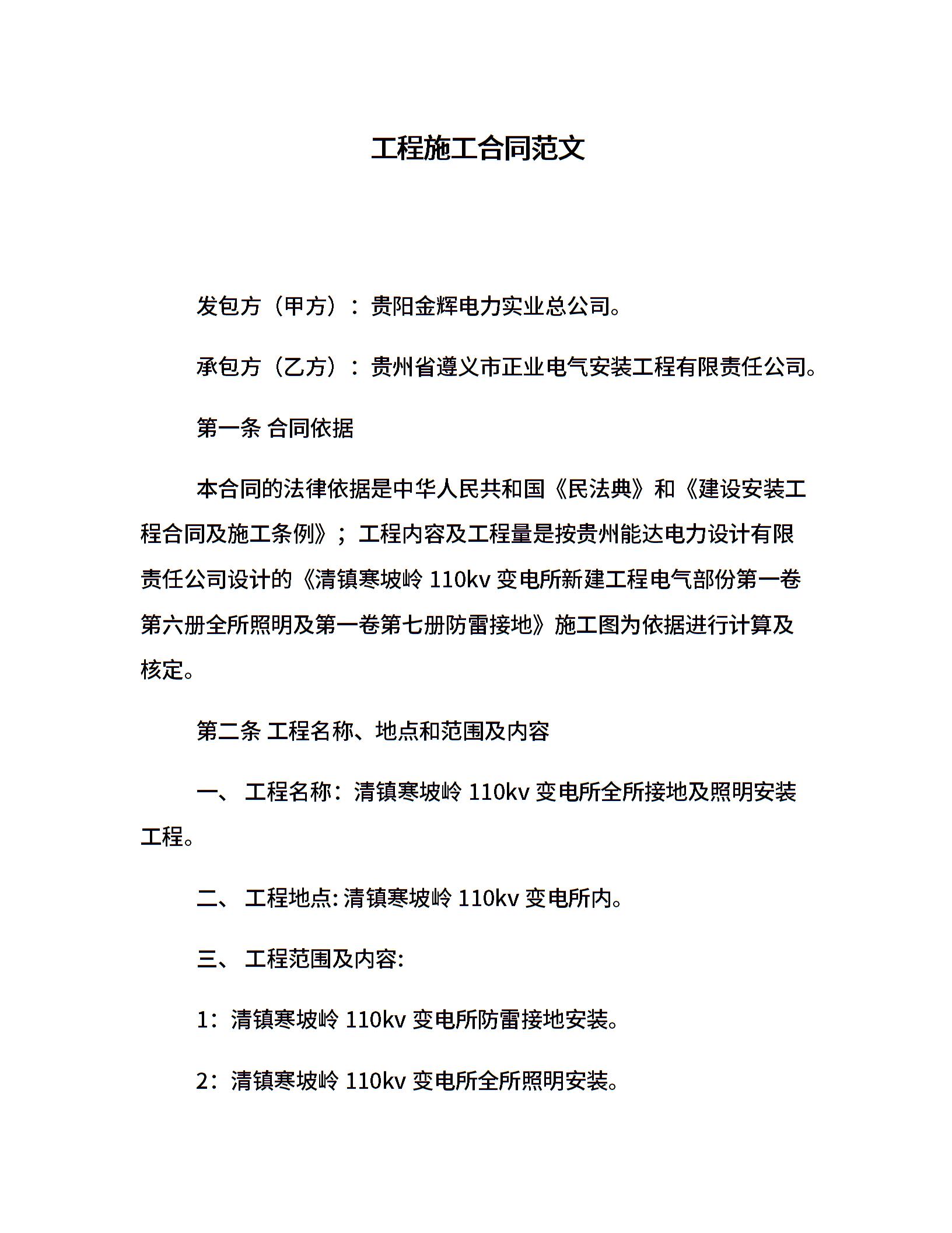 工程施工合同范文