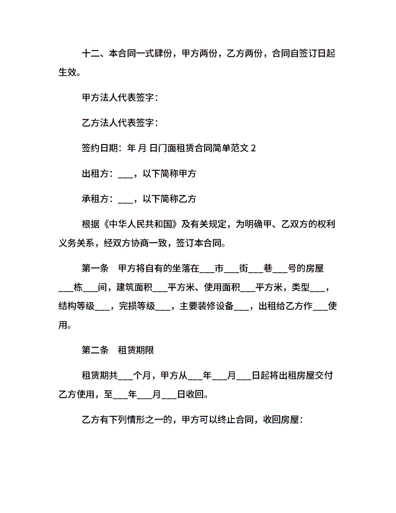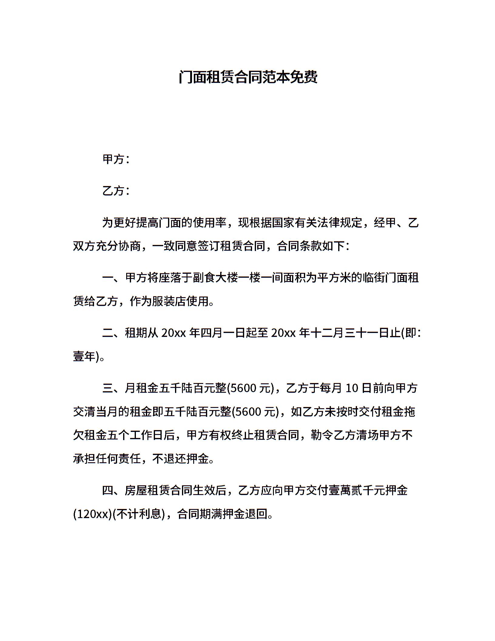 门面租赁合同范本免费