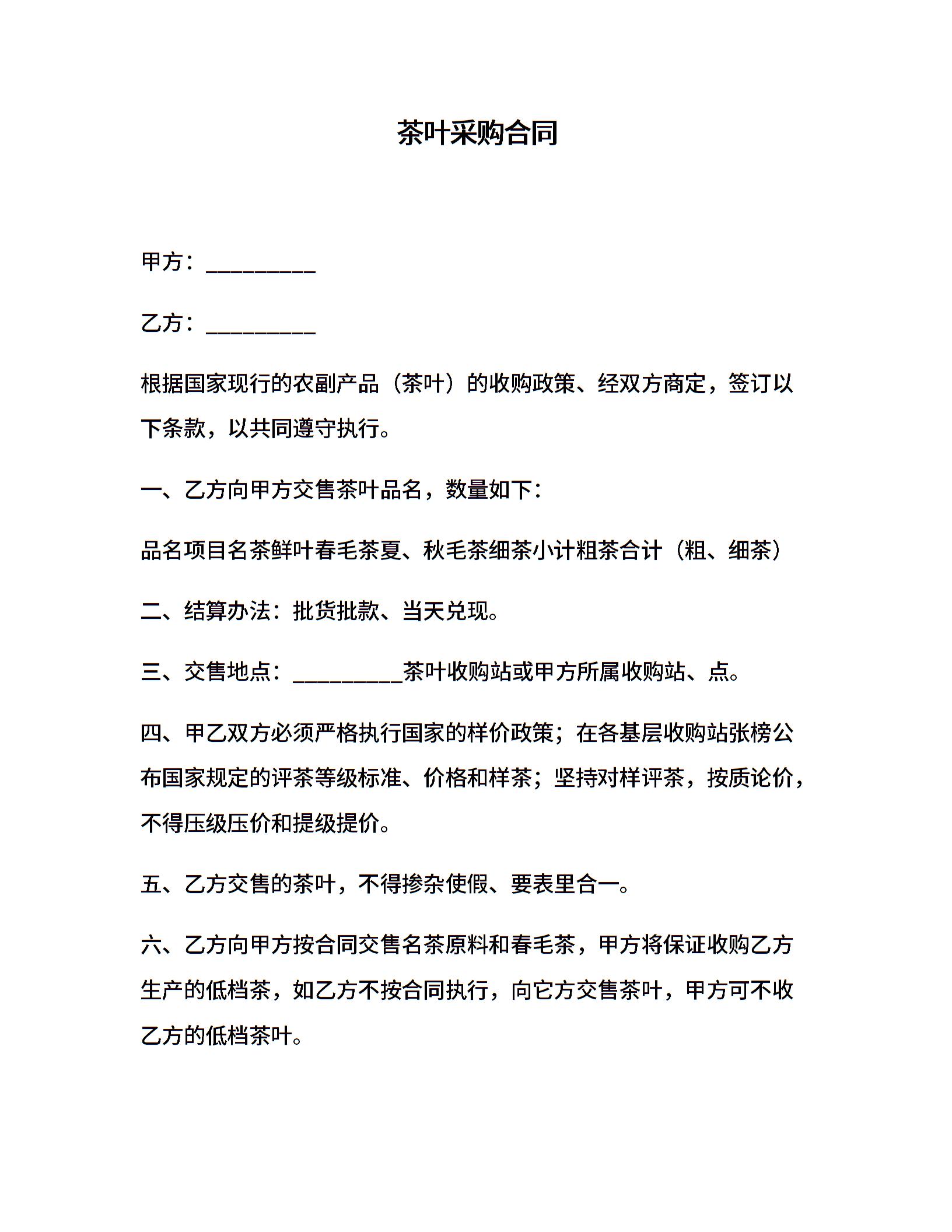 茶叶采购合同