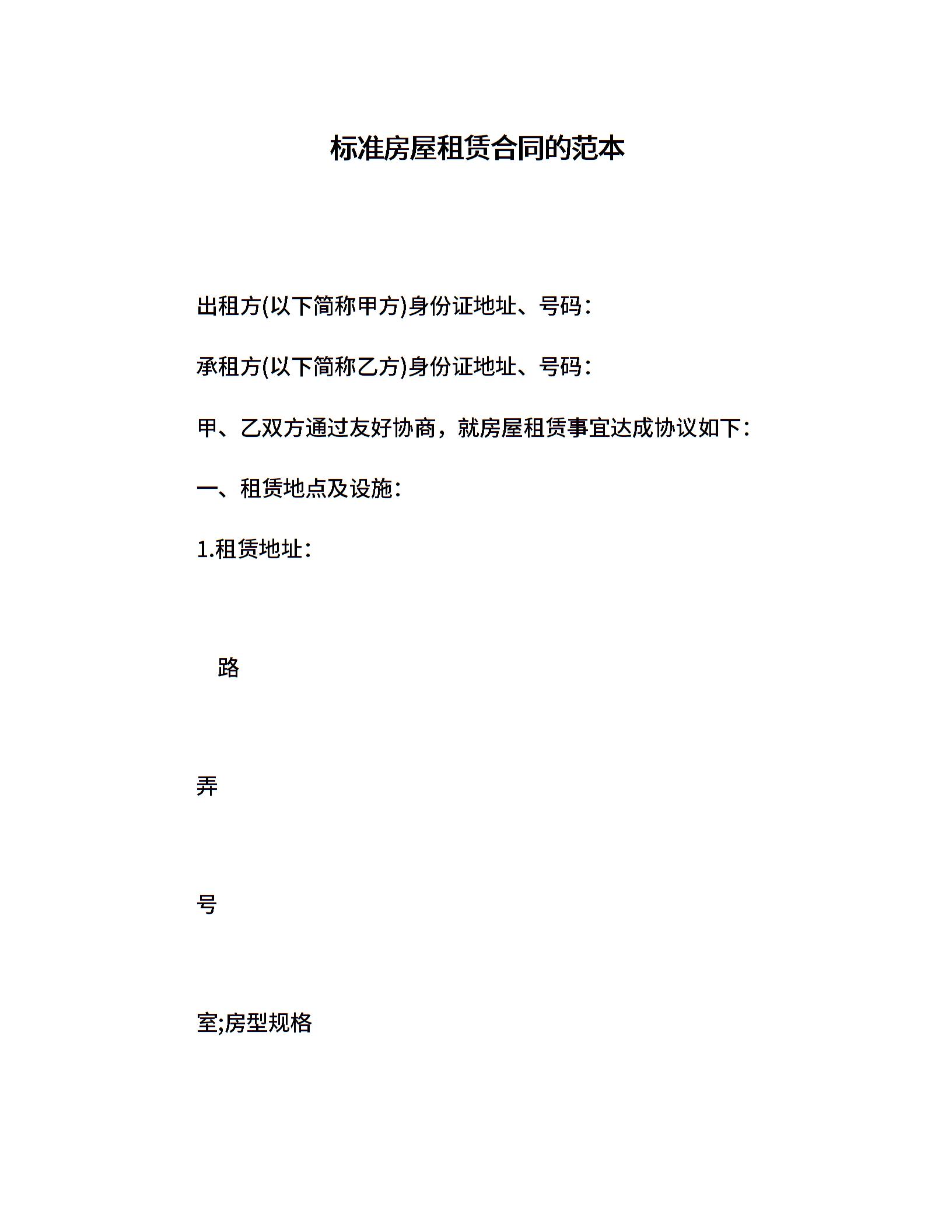 标准房屋租赁合同的范本