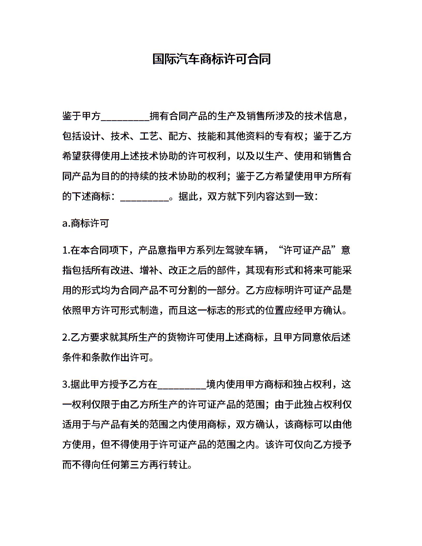 国际汽车商标许可合同