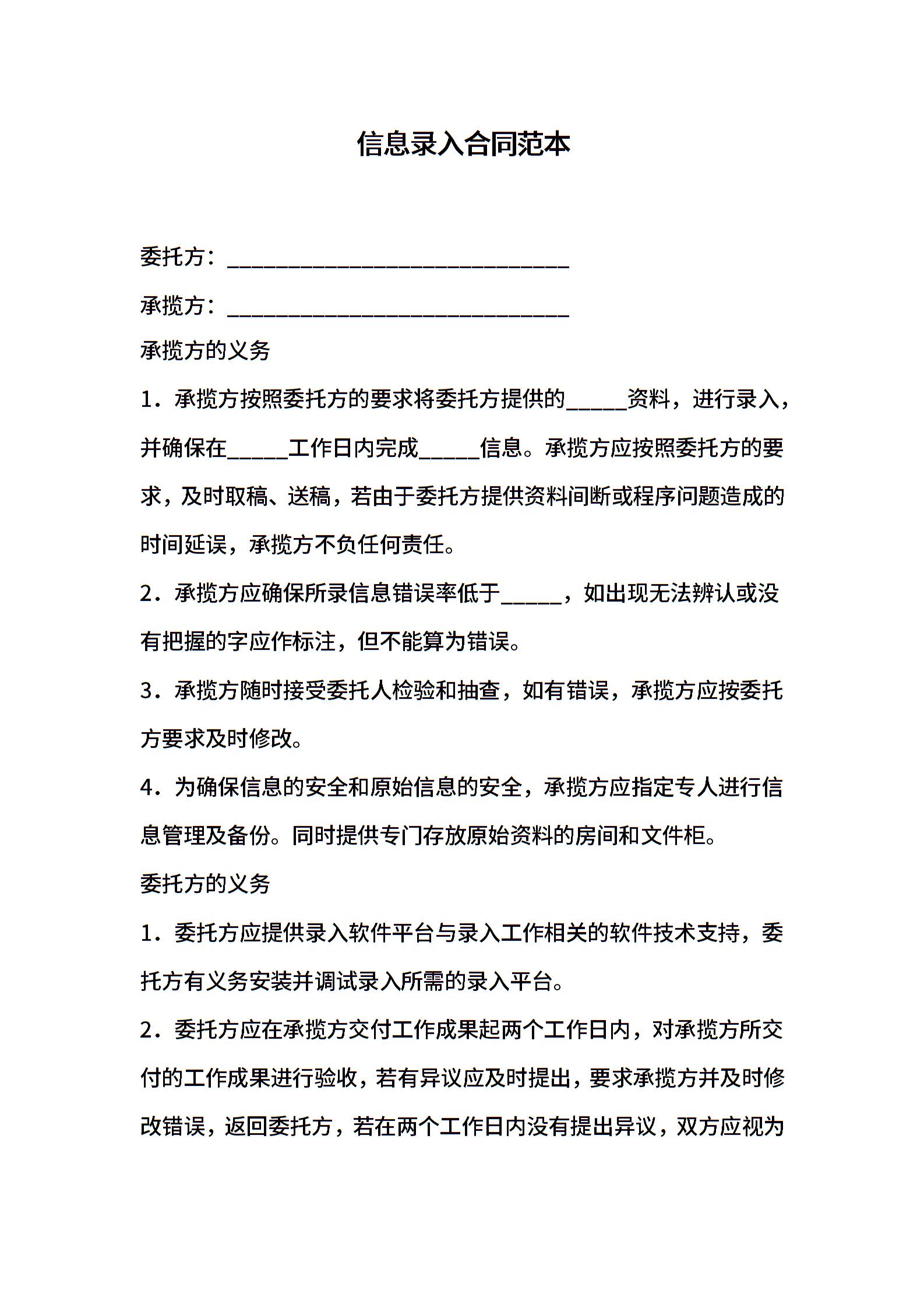 信息录入合同范本