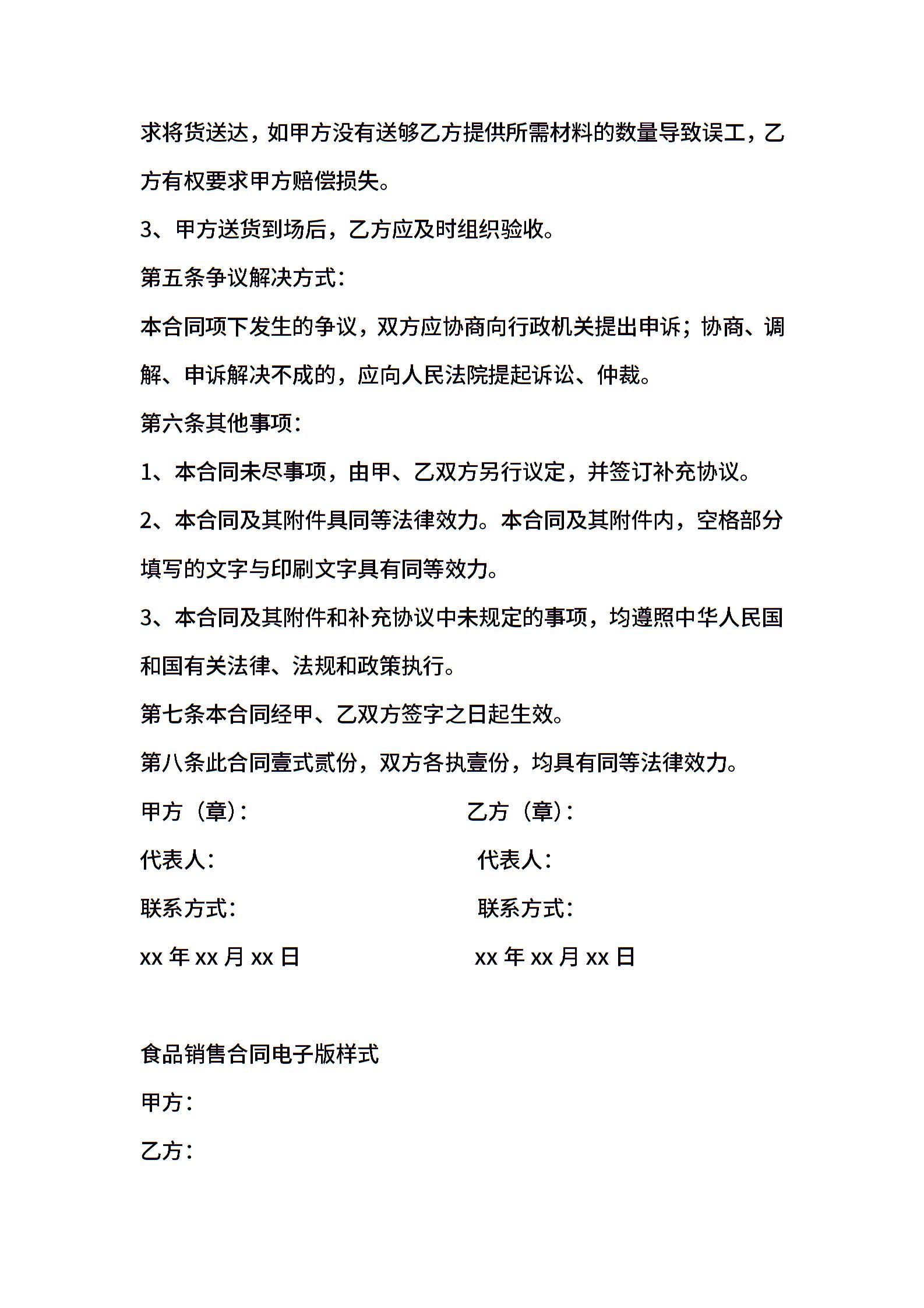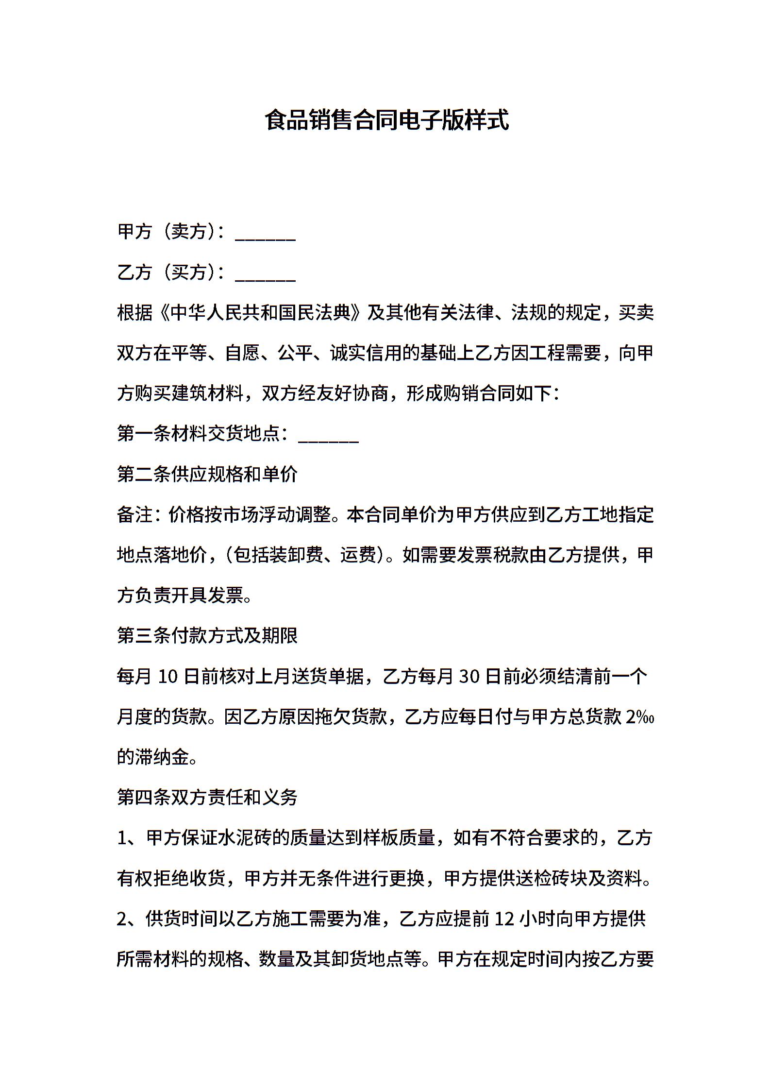 食品销售合同电子版样式