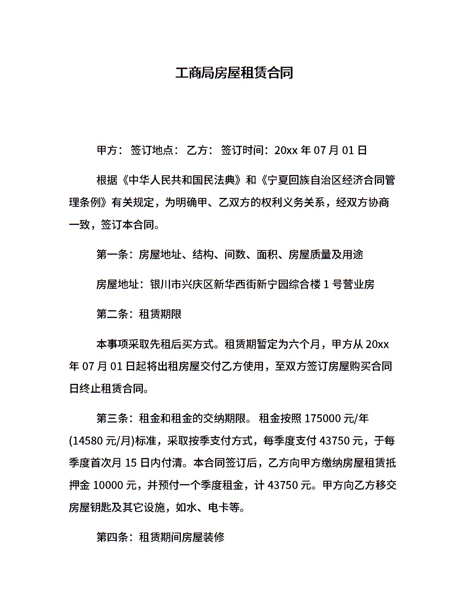 工商局房屋租赁合同