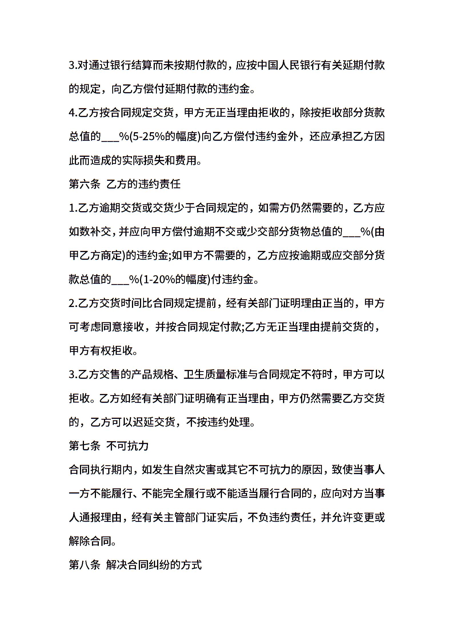 实用食品购销合同范本