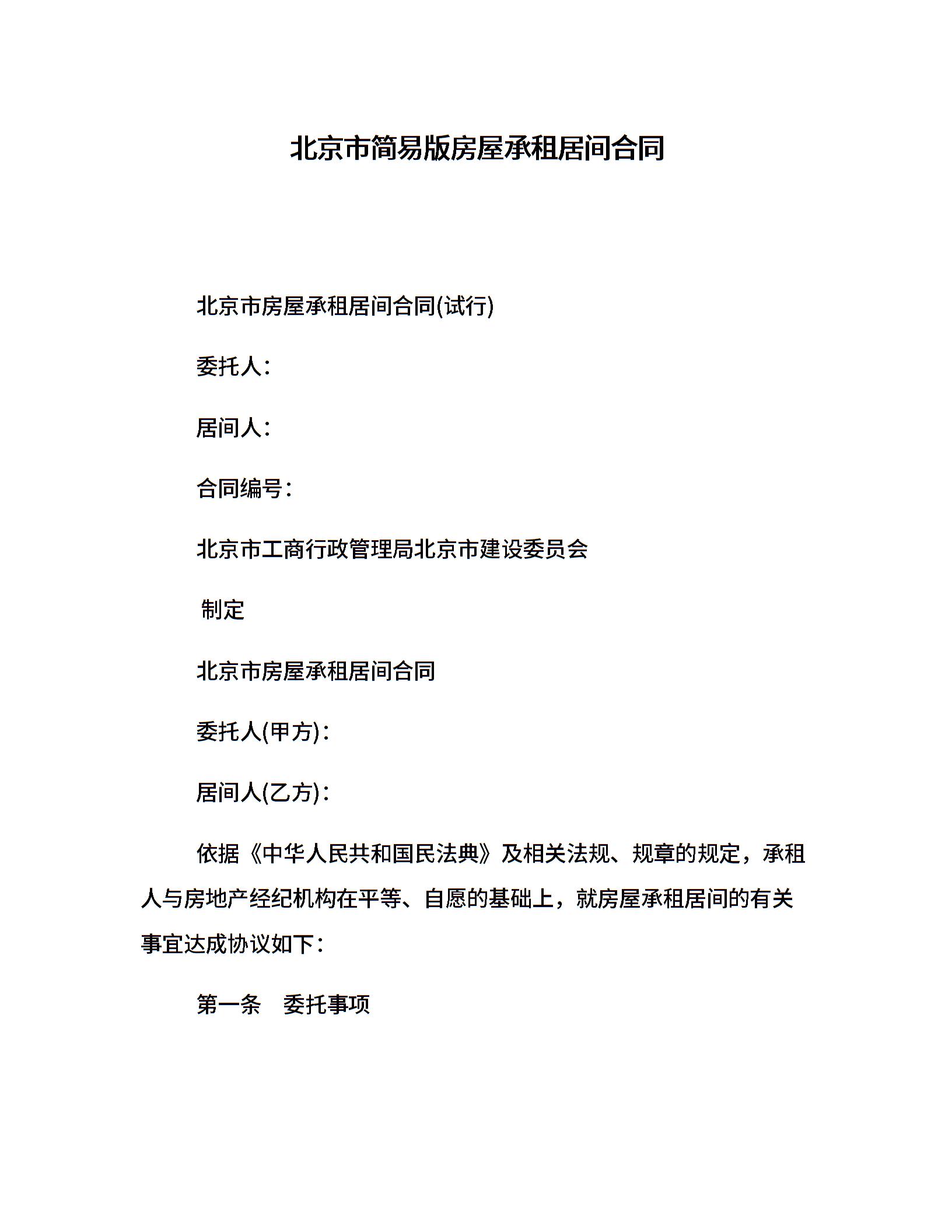 北京市简易版房屋承租居间合同