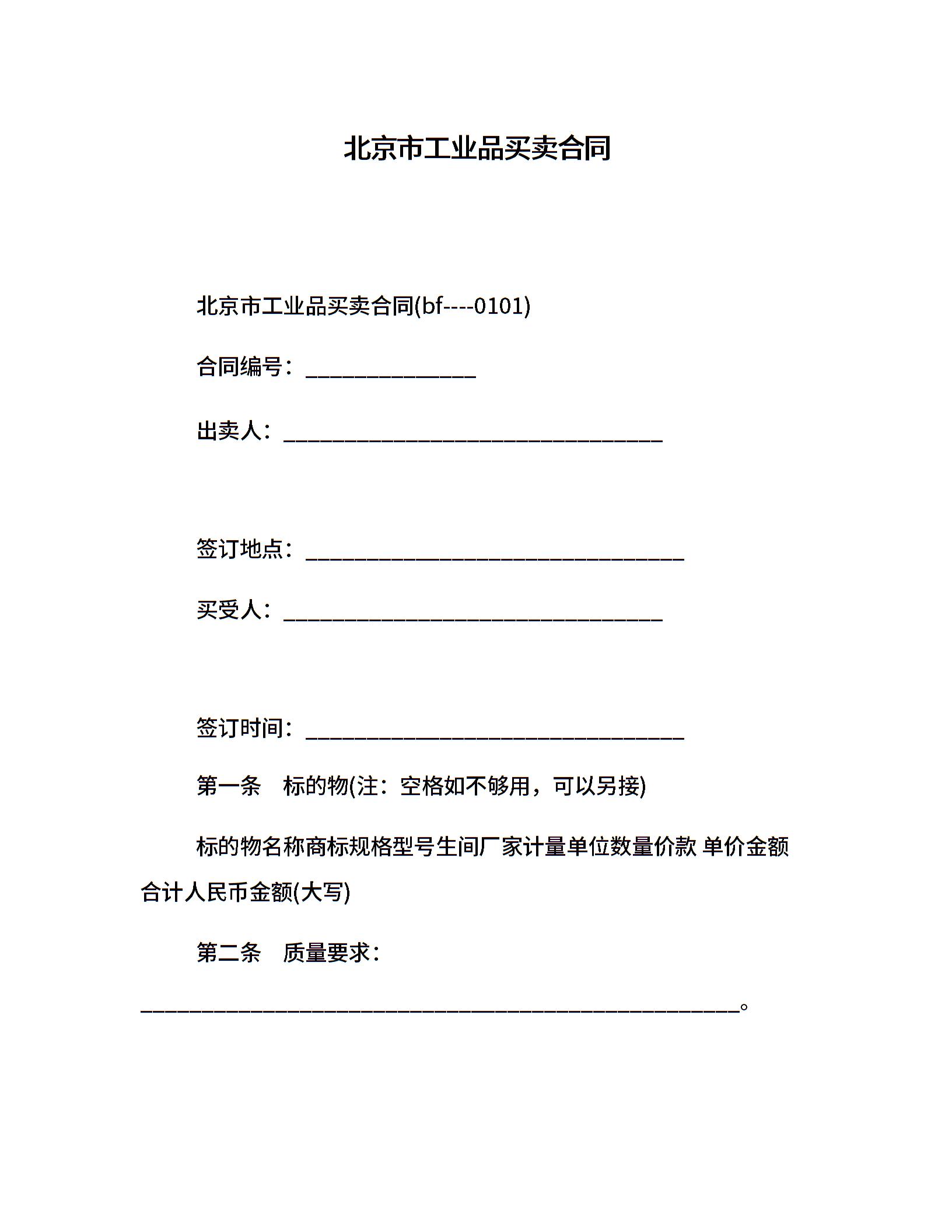 北京市工业品买卖合同