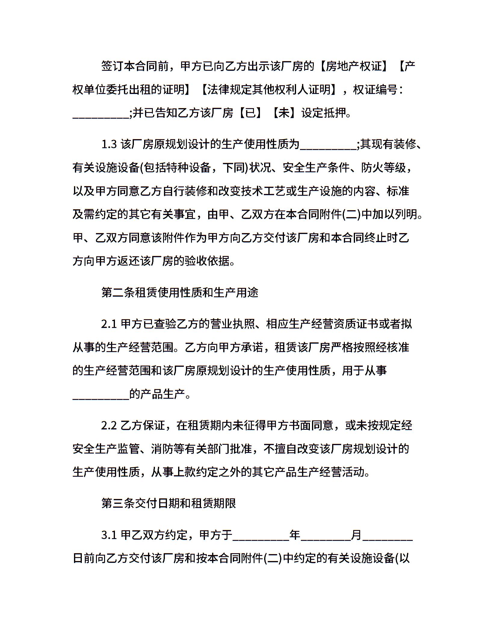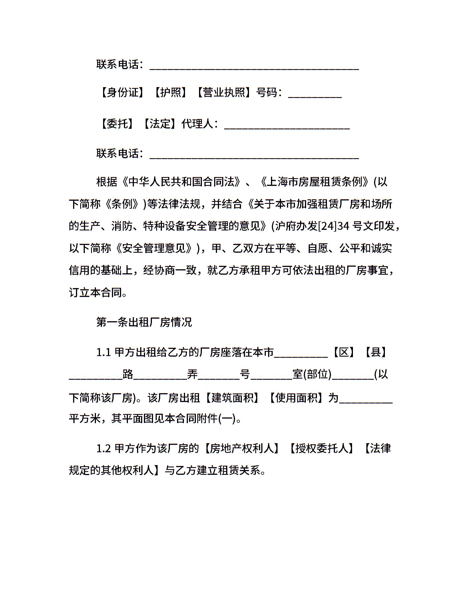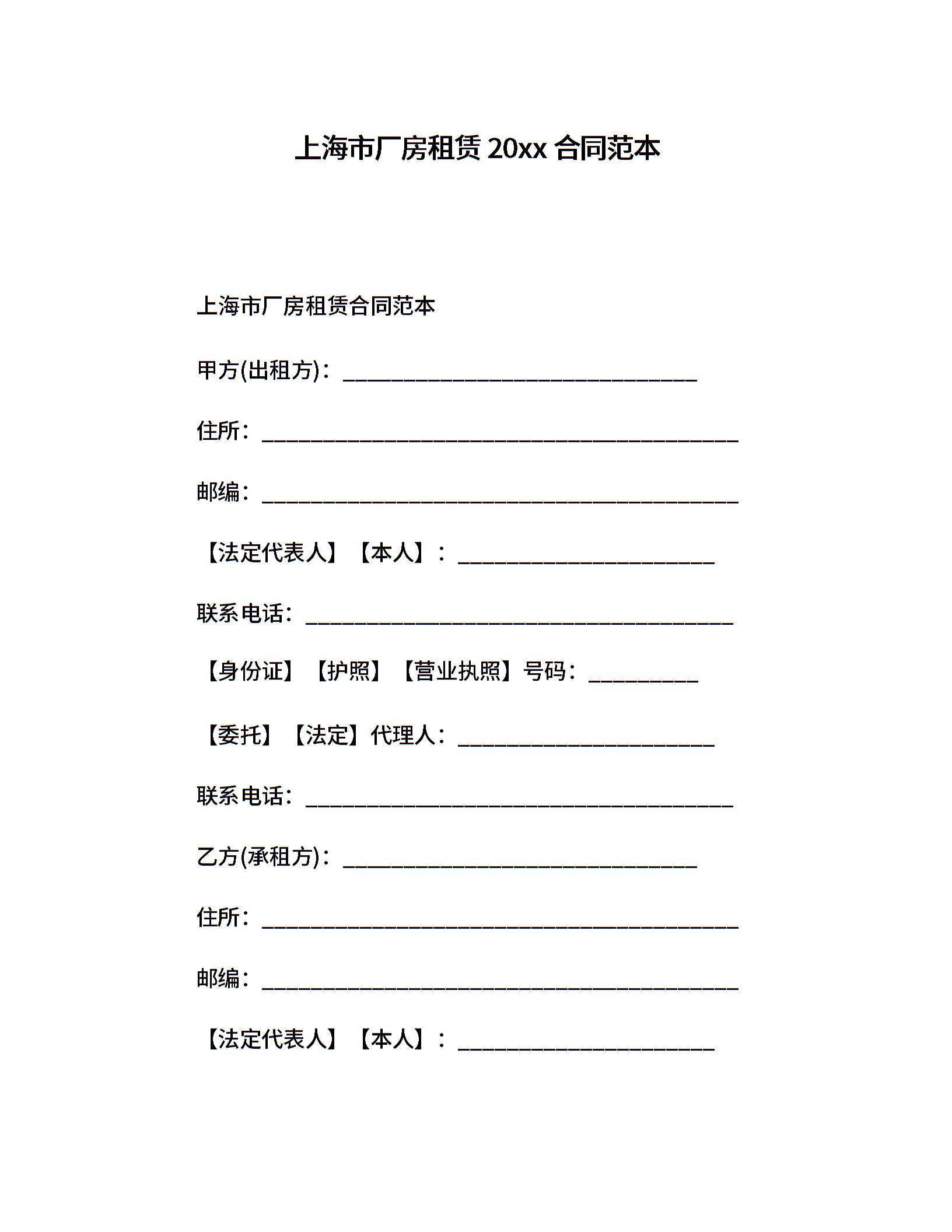 上海市厂房租赁20xx合同范本