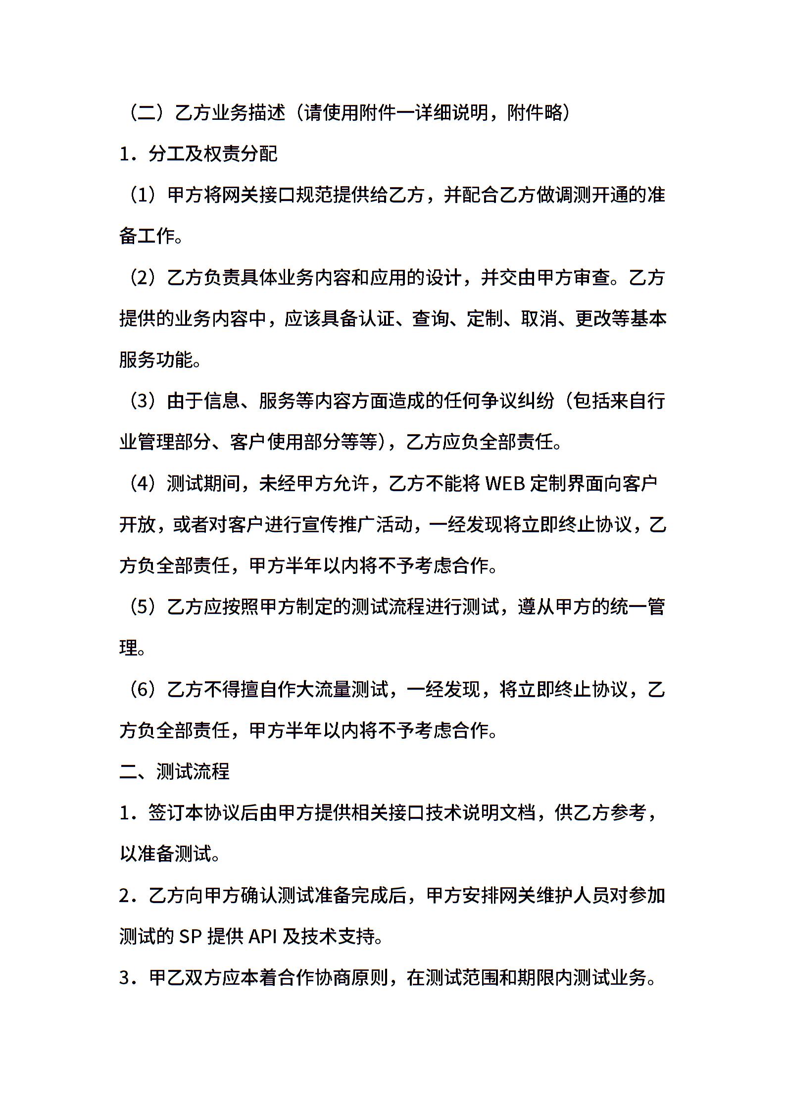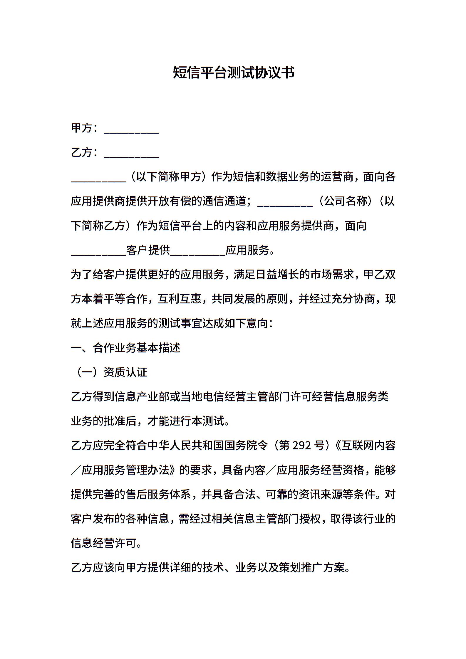 短信平台测试协议书