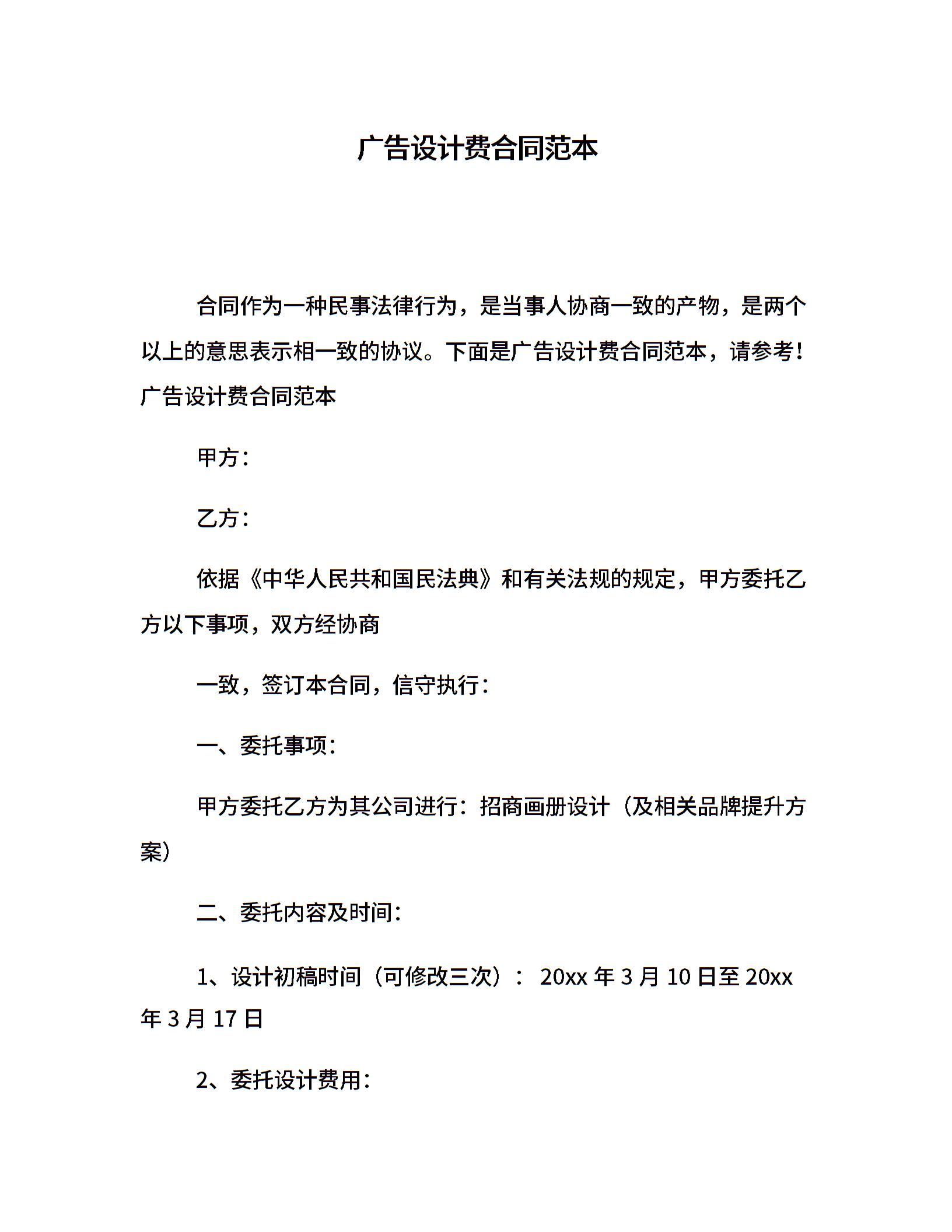 广告设计费合同范本