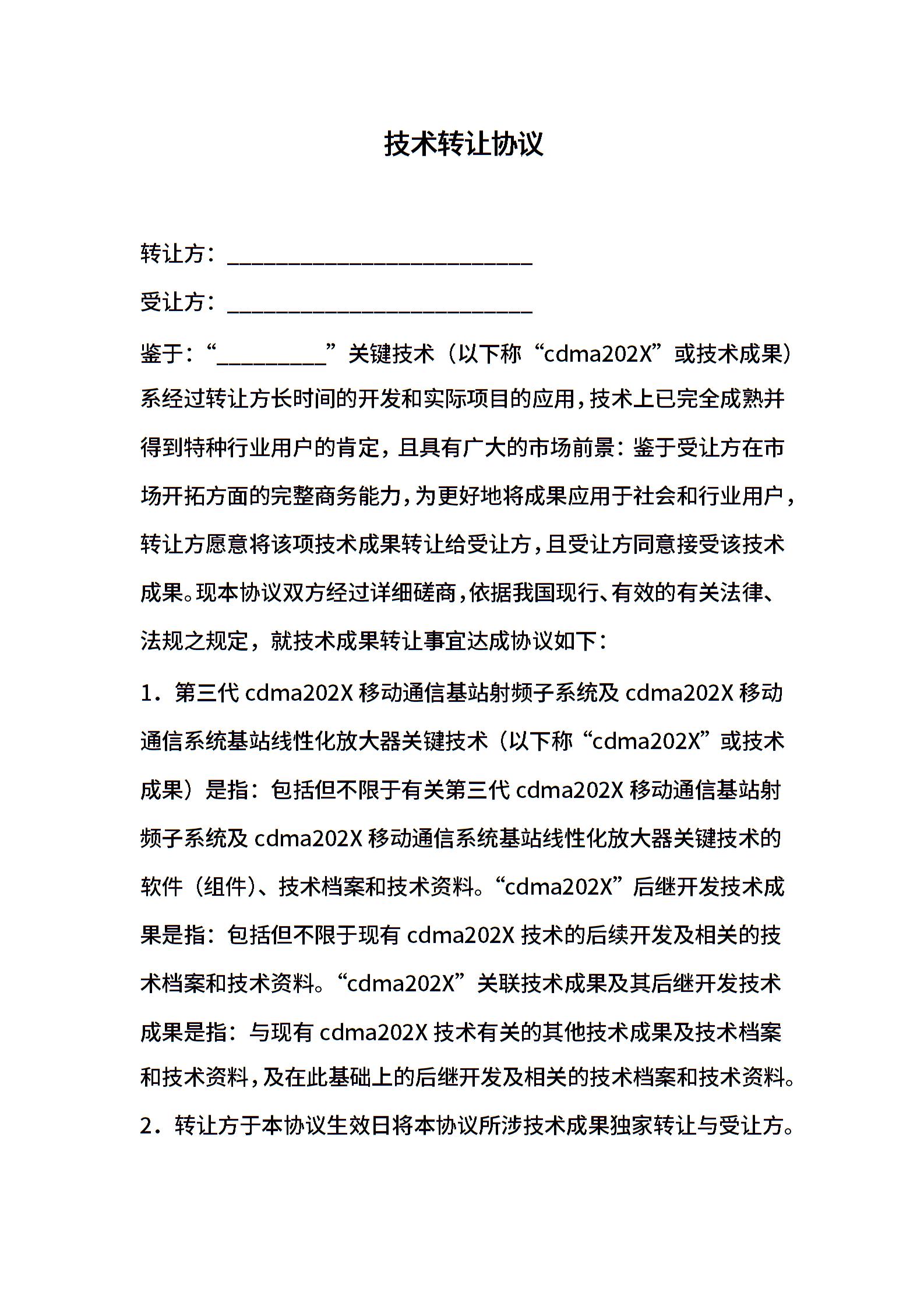 当前位置:量子办公 > 合同模板 > 转让合同 >