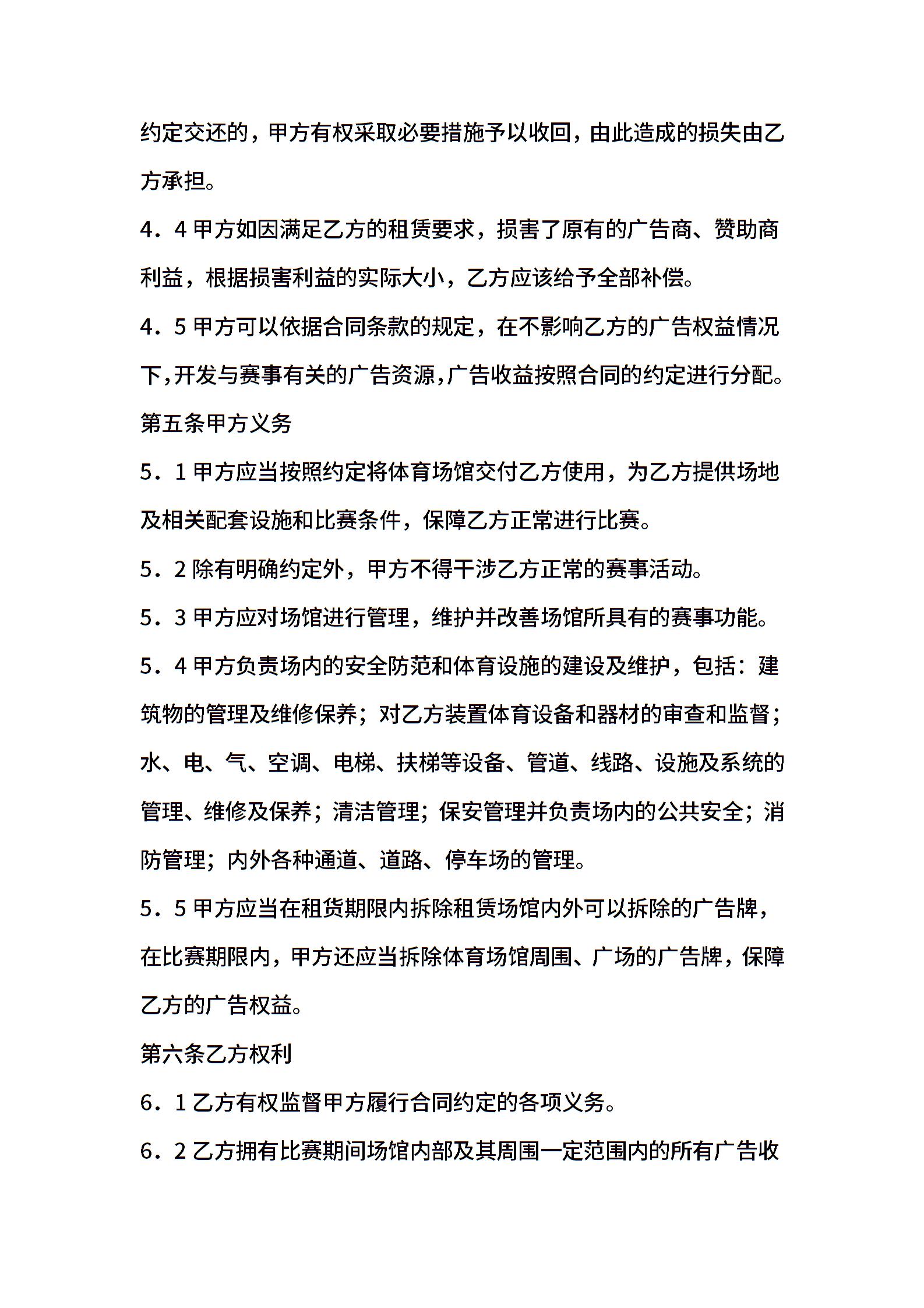 体育赛事场地租赁合同