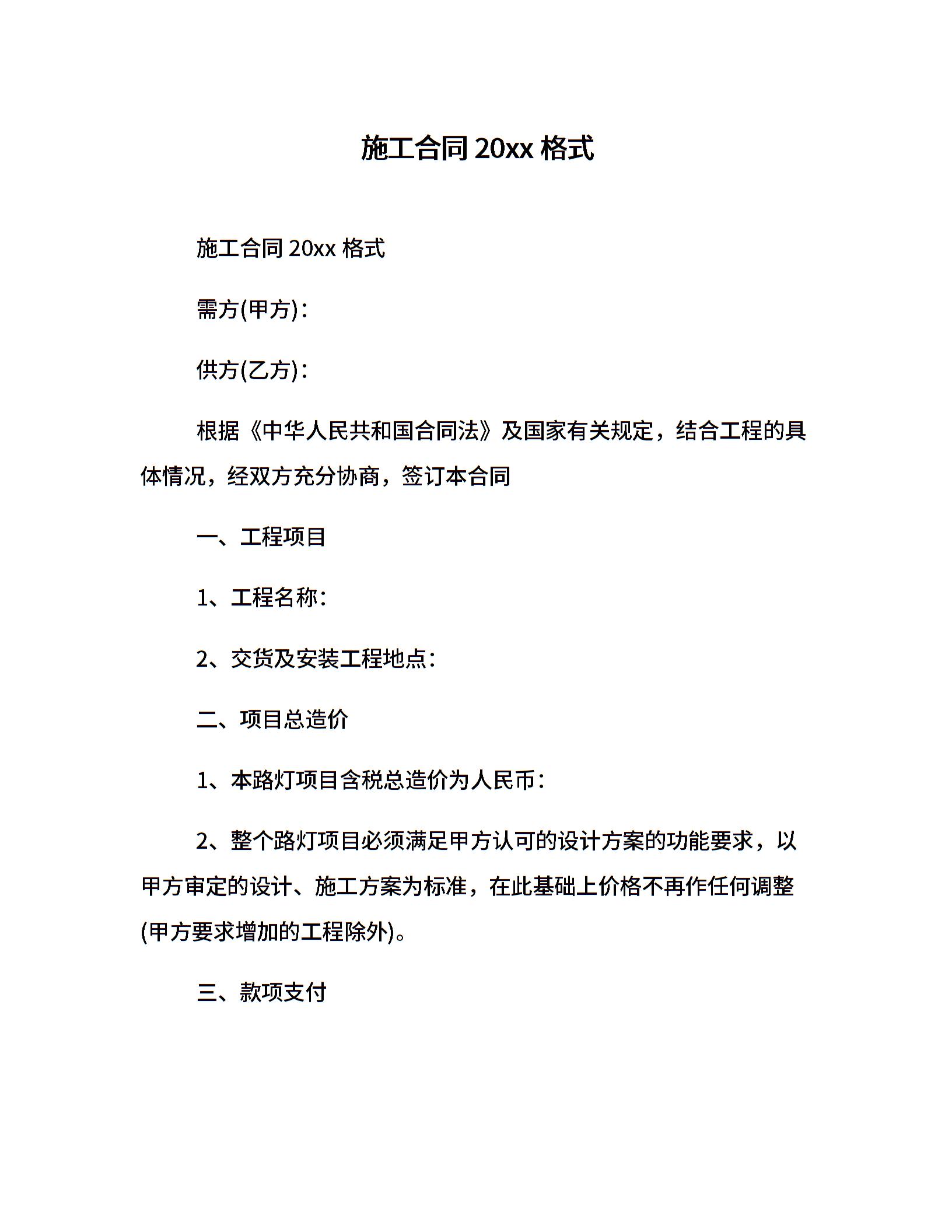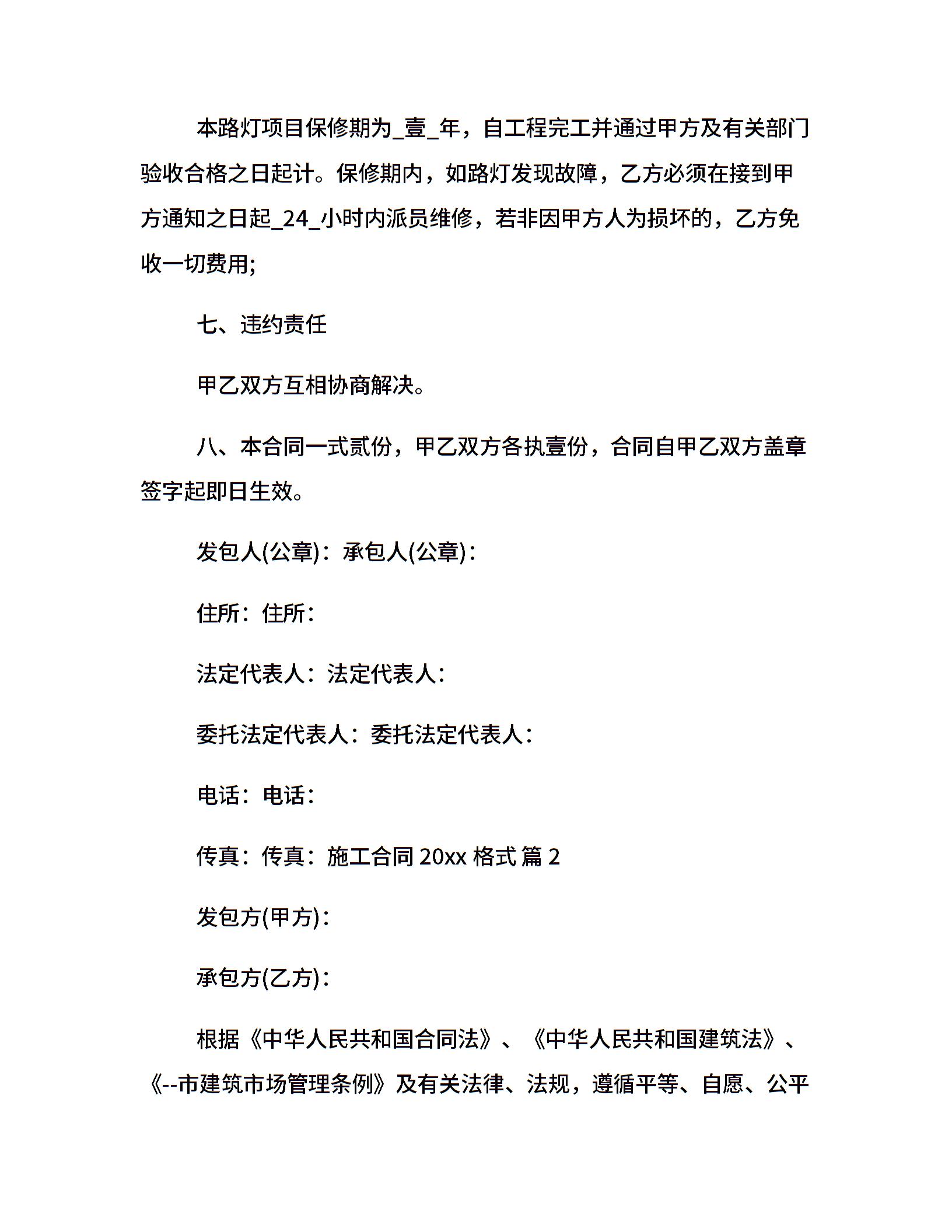 施工合同20xx格式