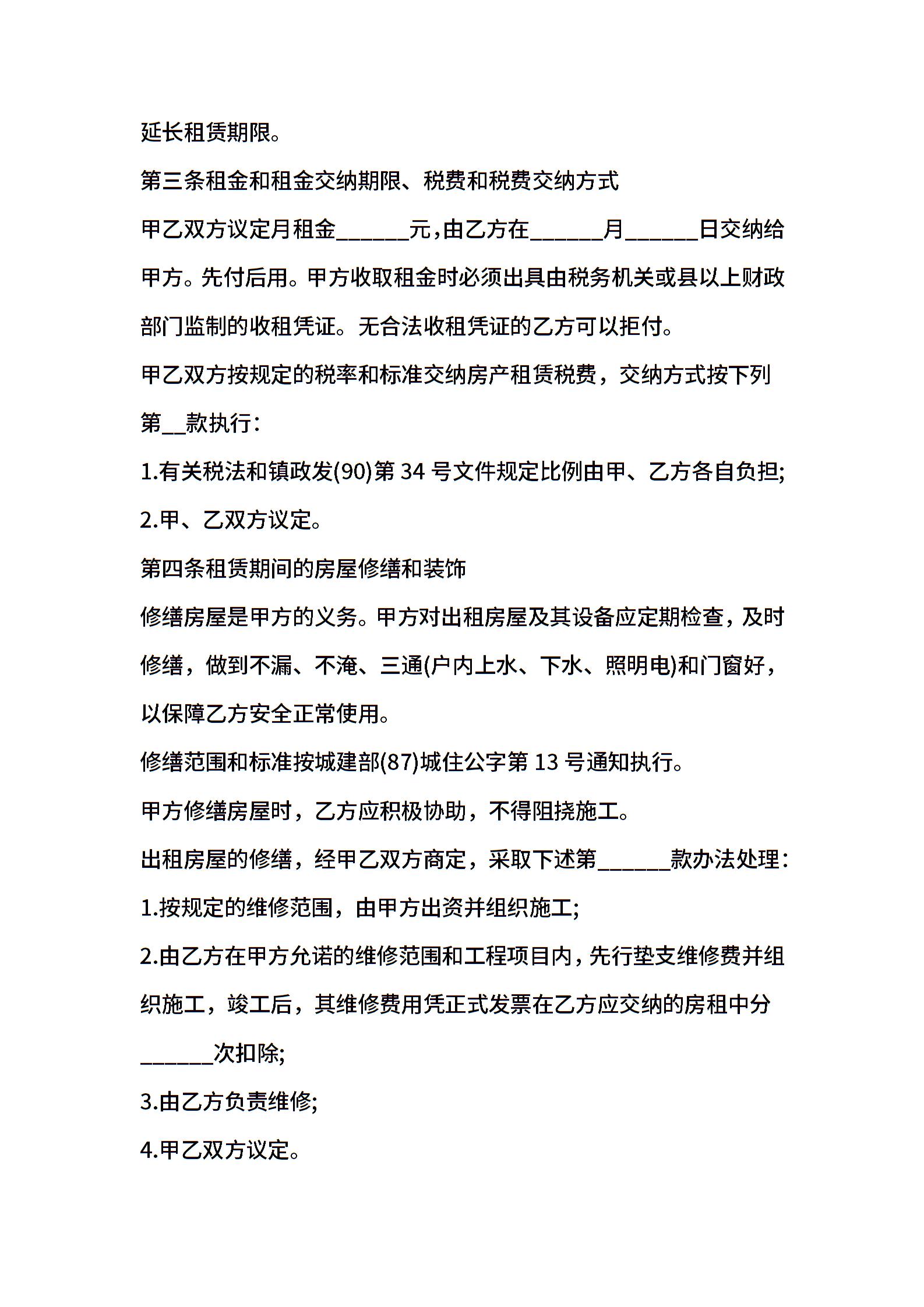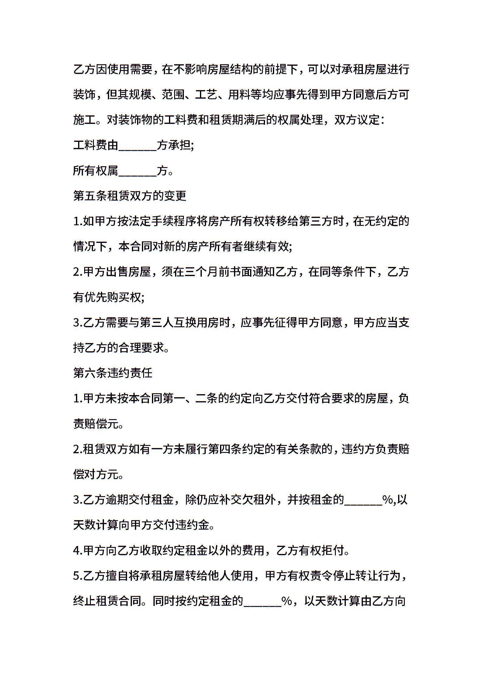 家庭房屋租赁合同