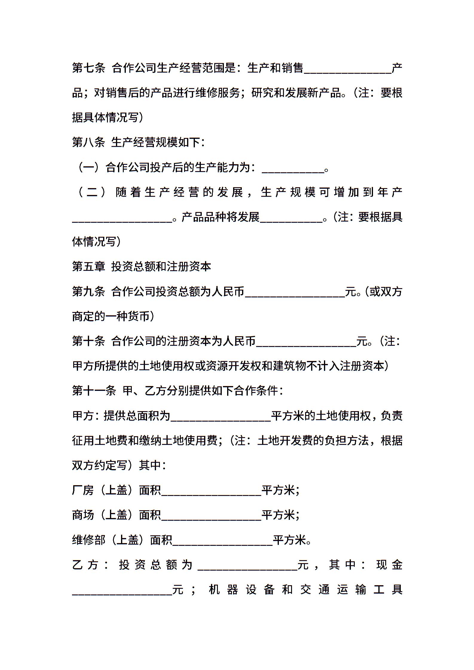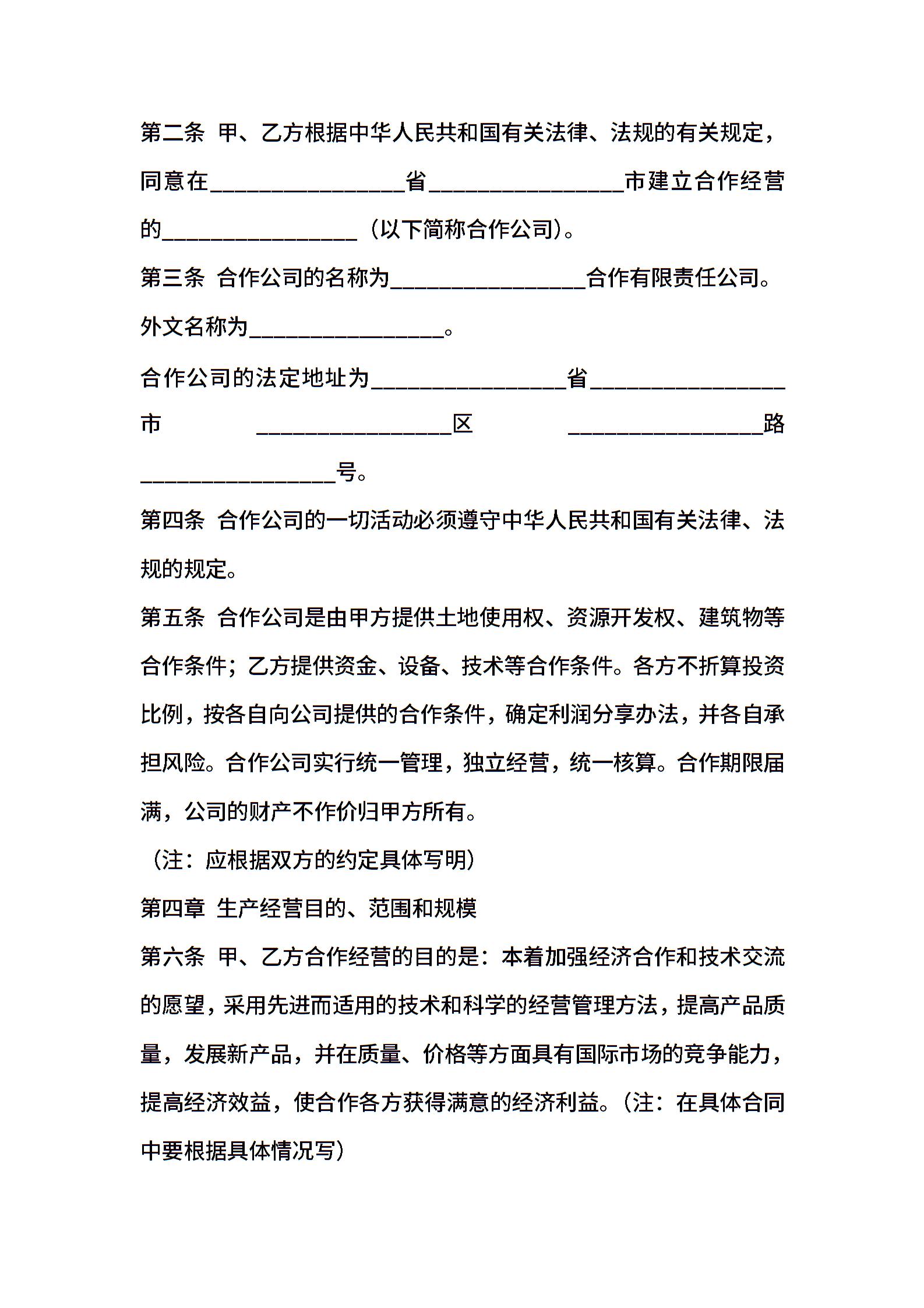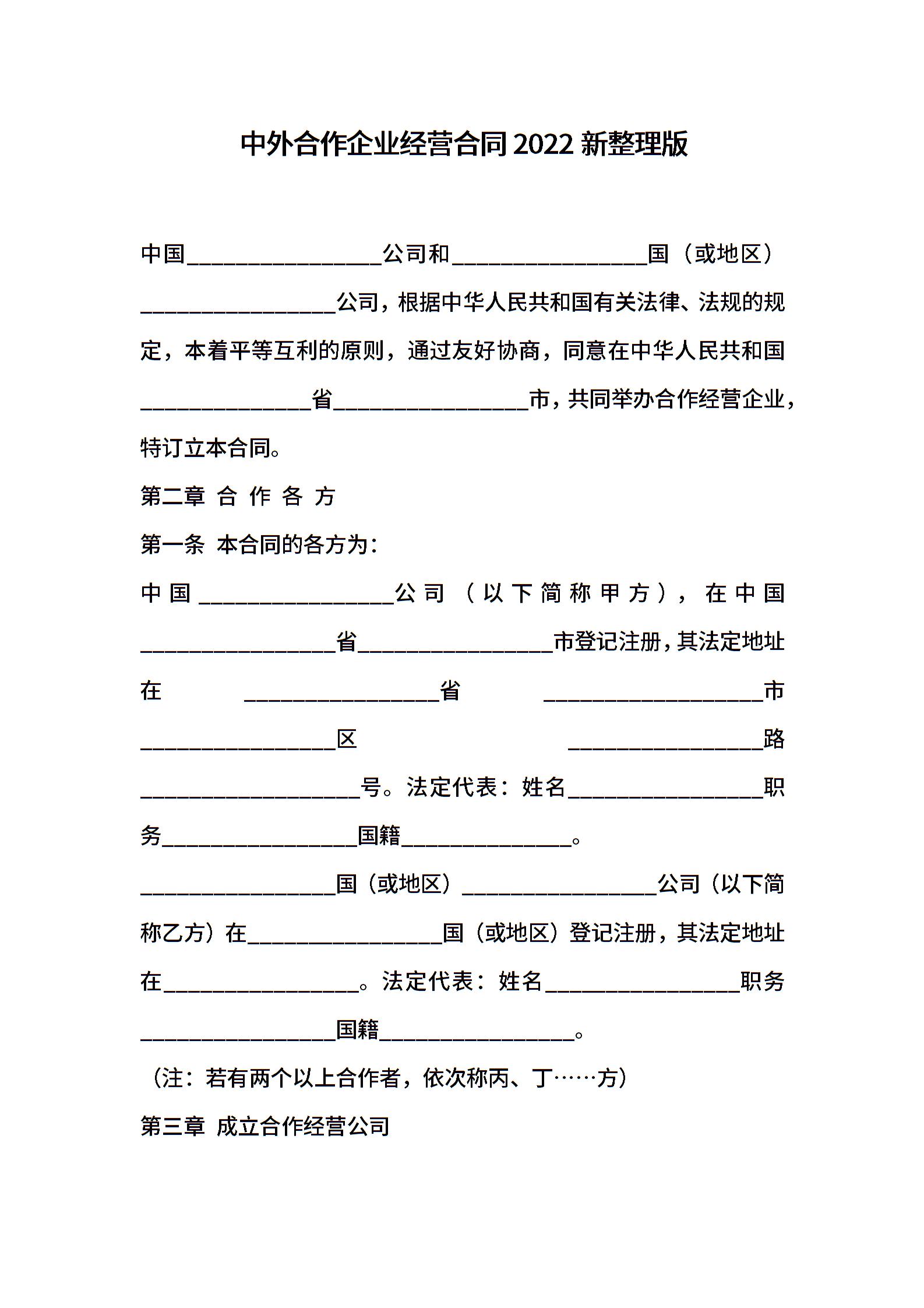 中外合作企业经营合同2022新整理版