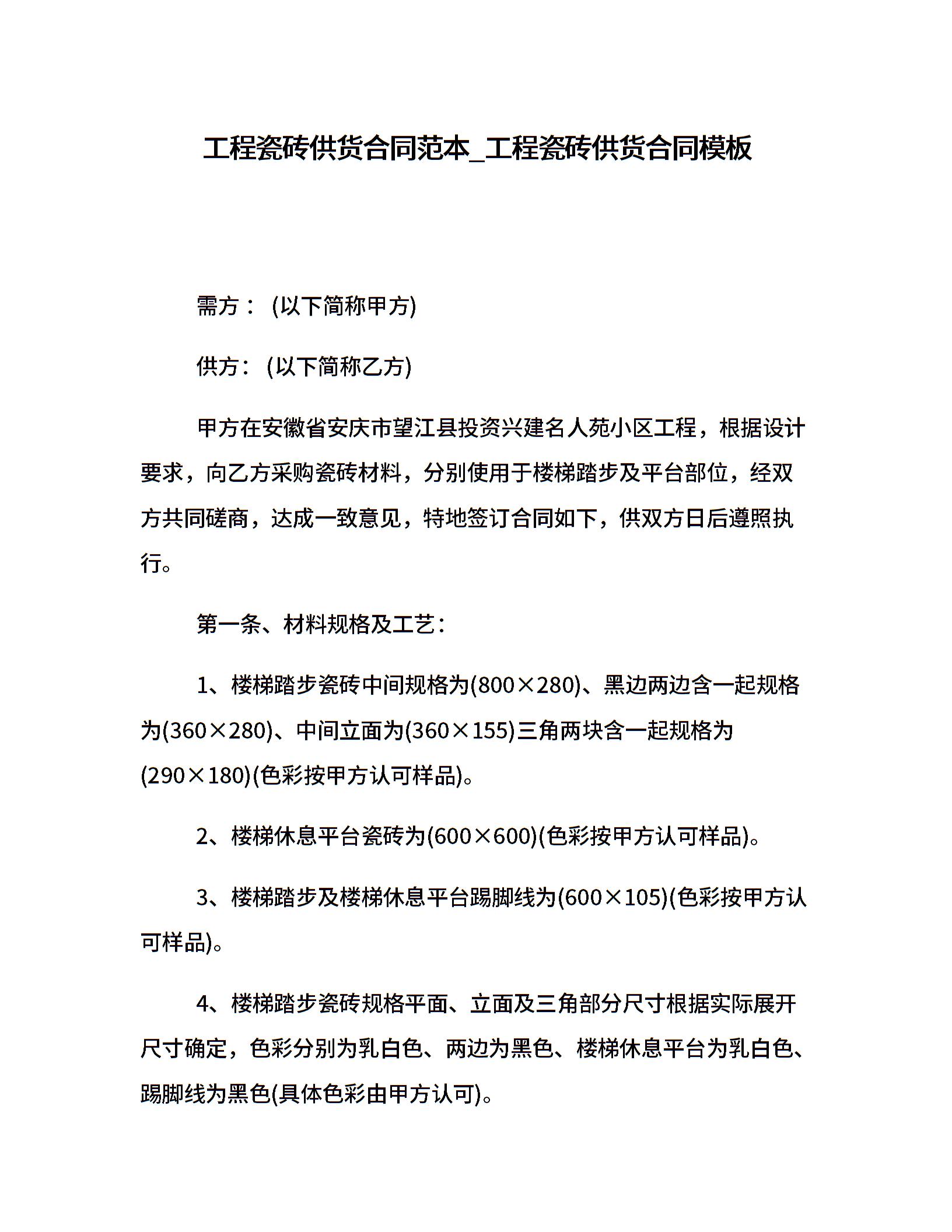 工程瓷砖供货合同范本_工程瓷砖供货合同模板