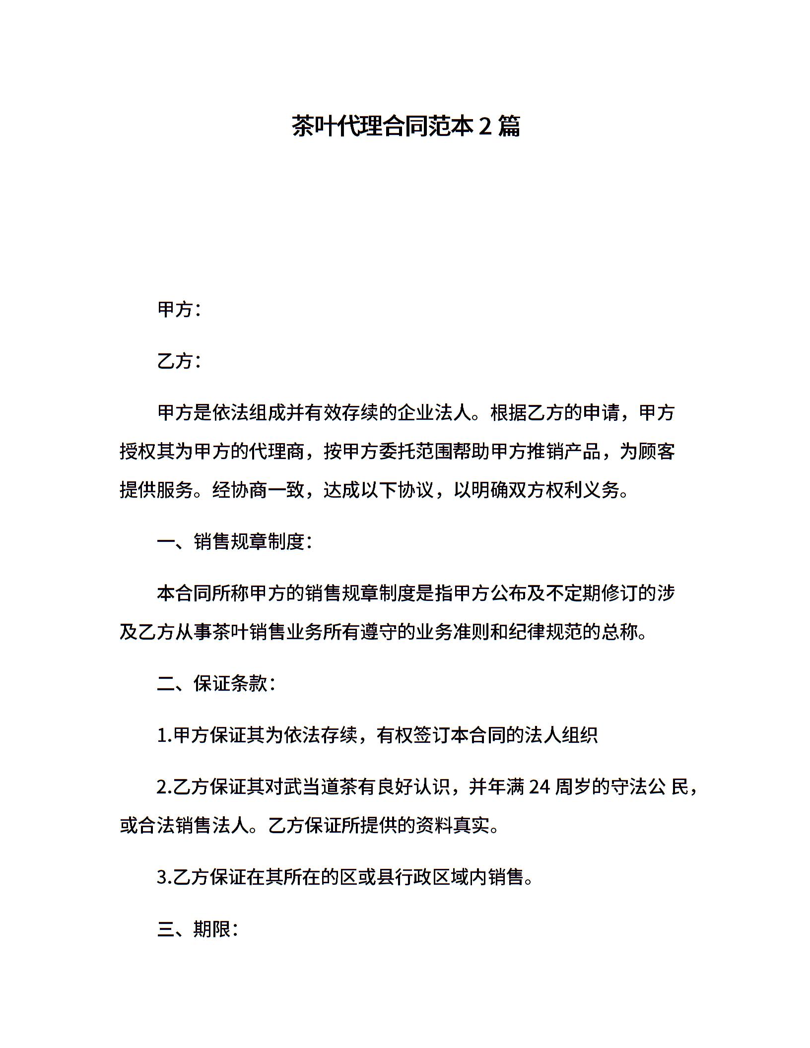 茶叶代理合同范本2篇