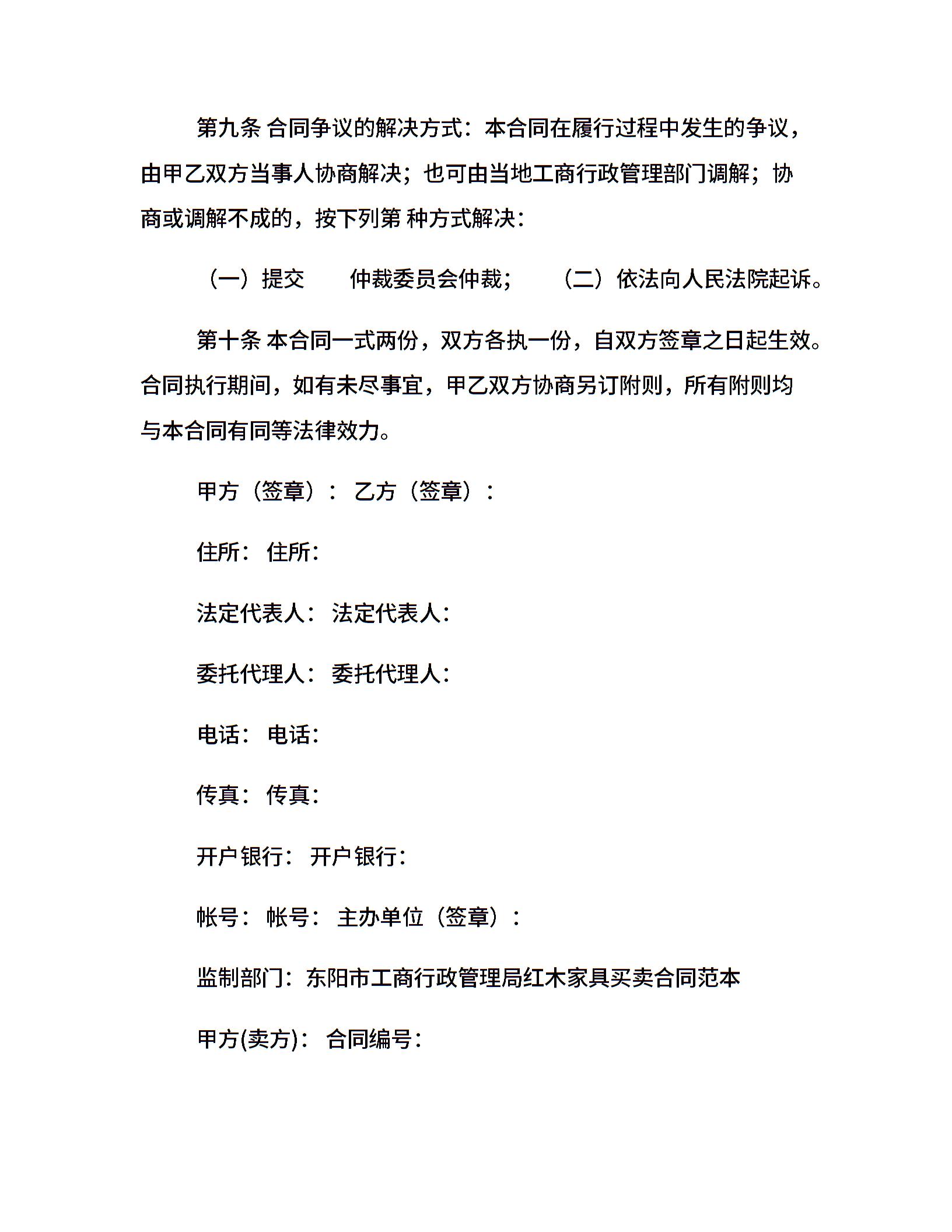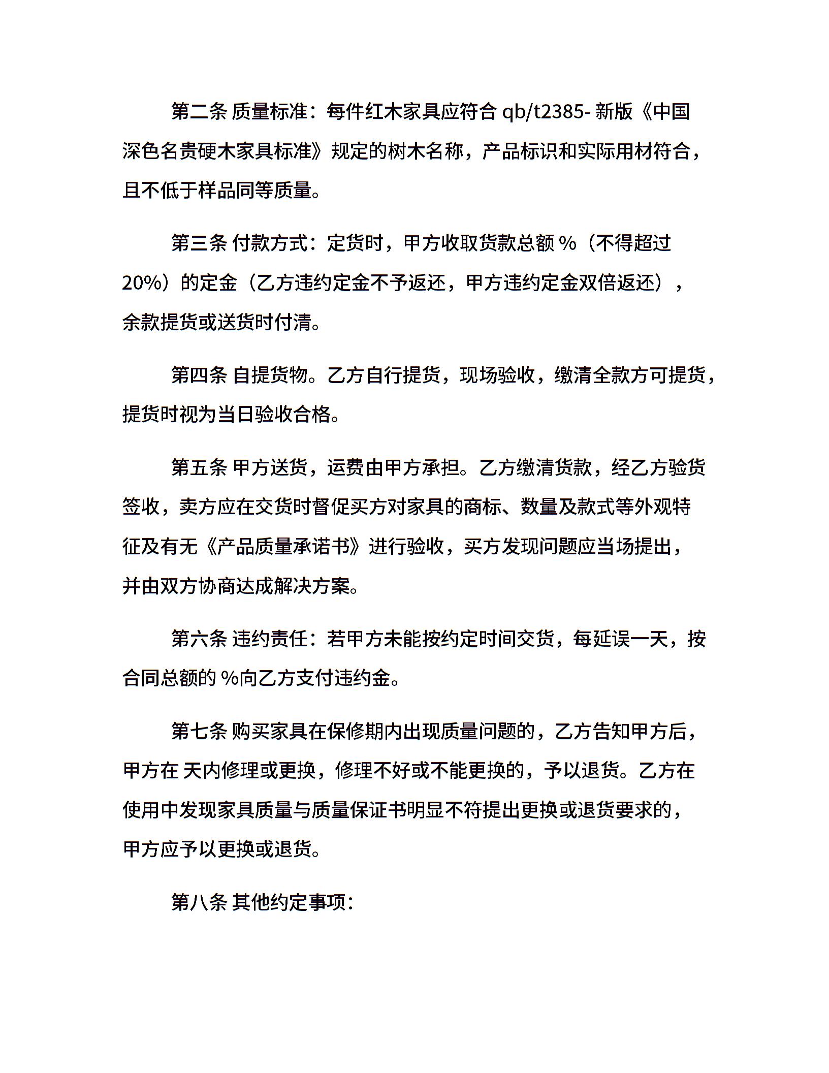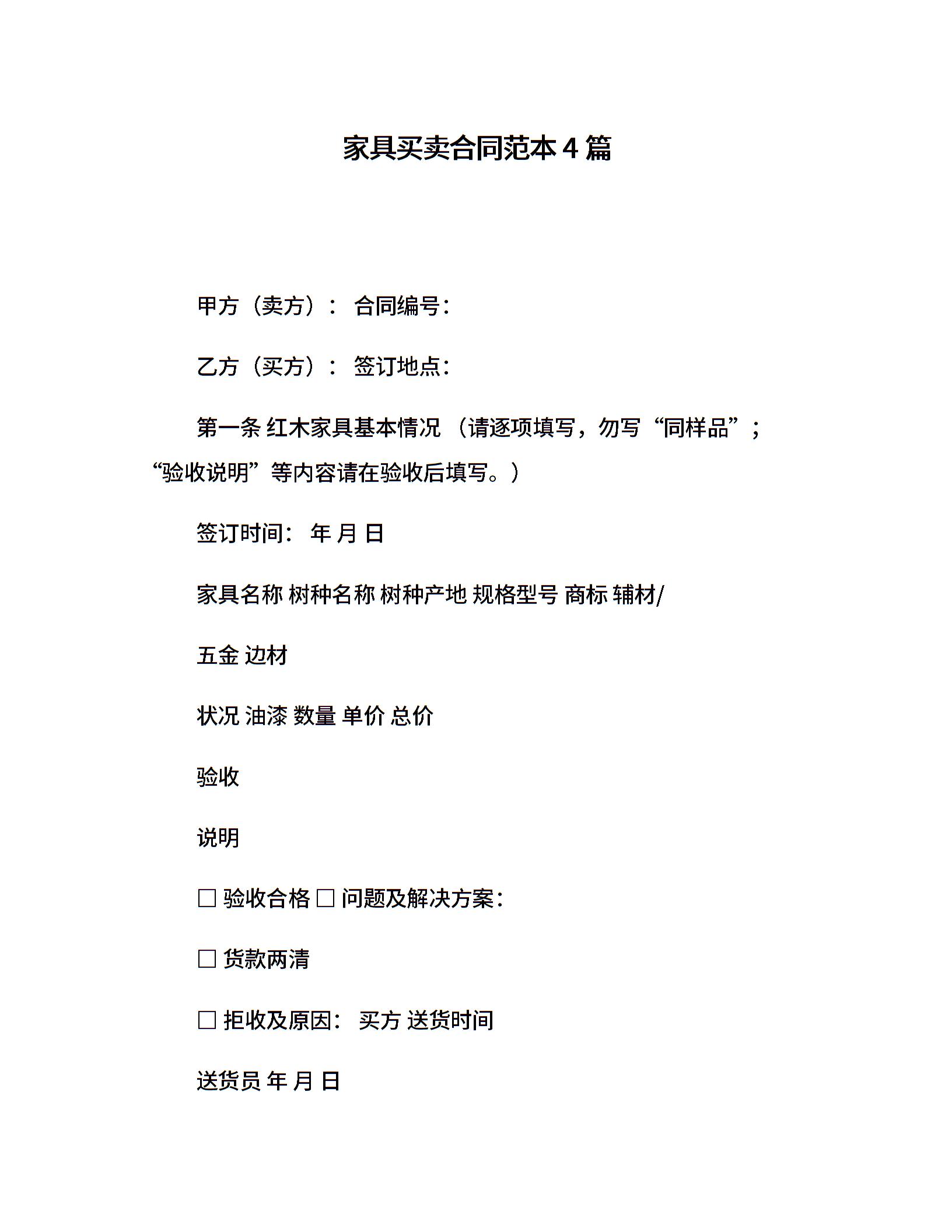 家具买卖合同范本4篇