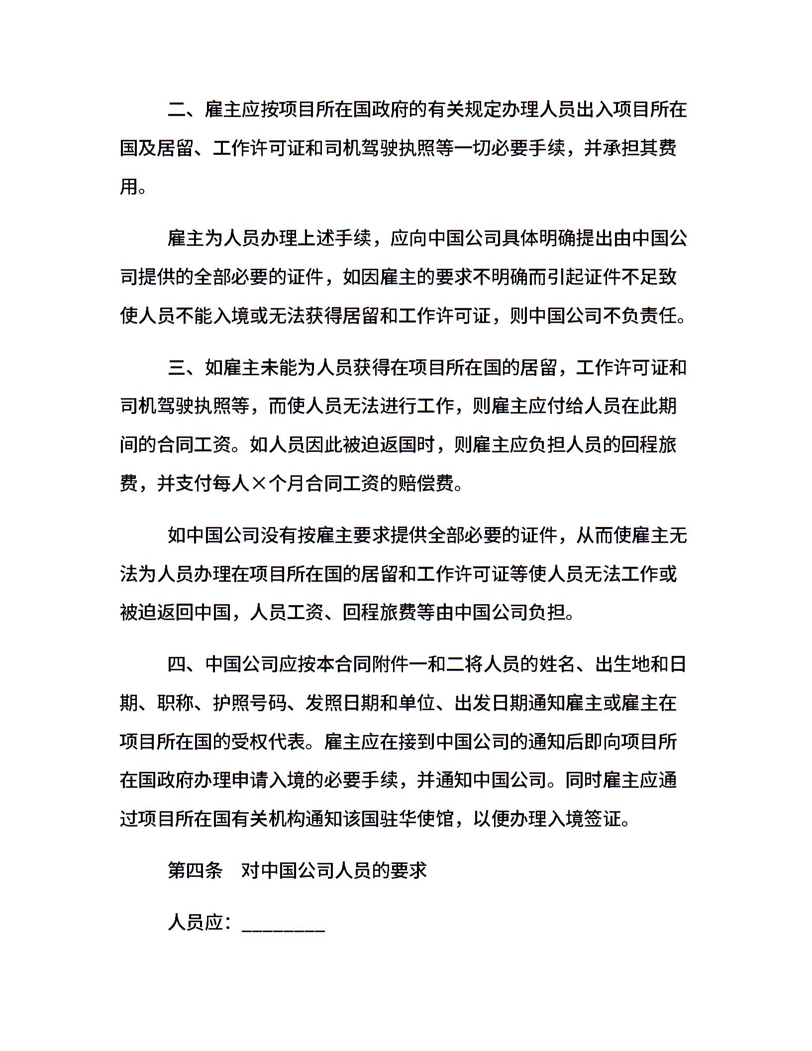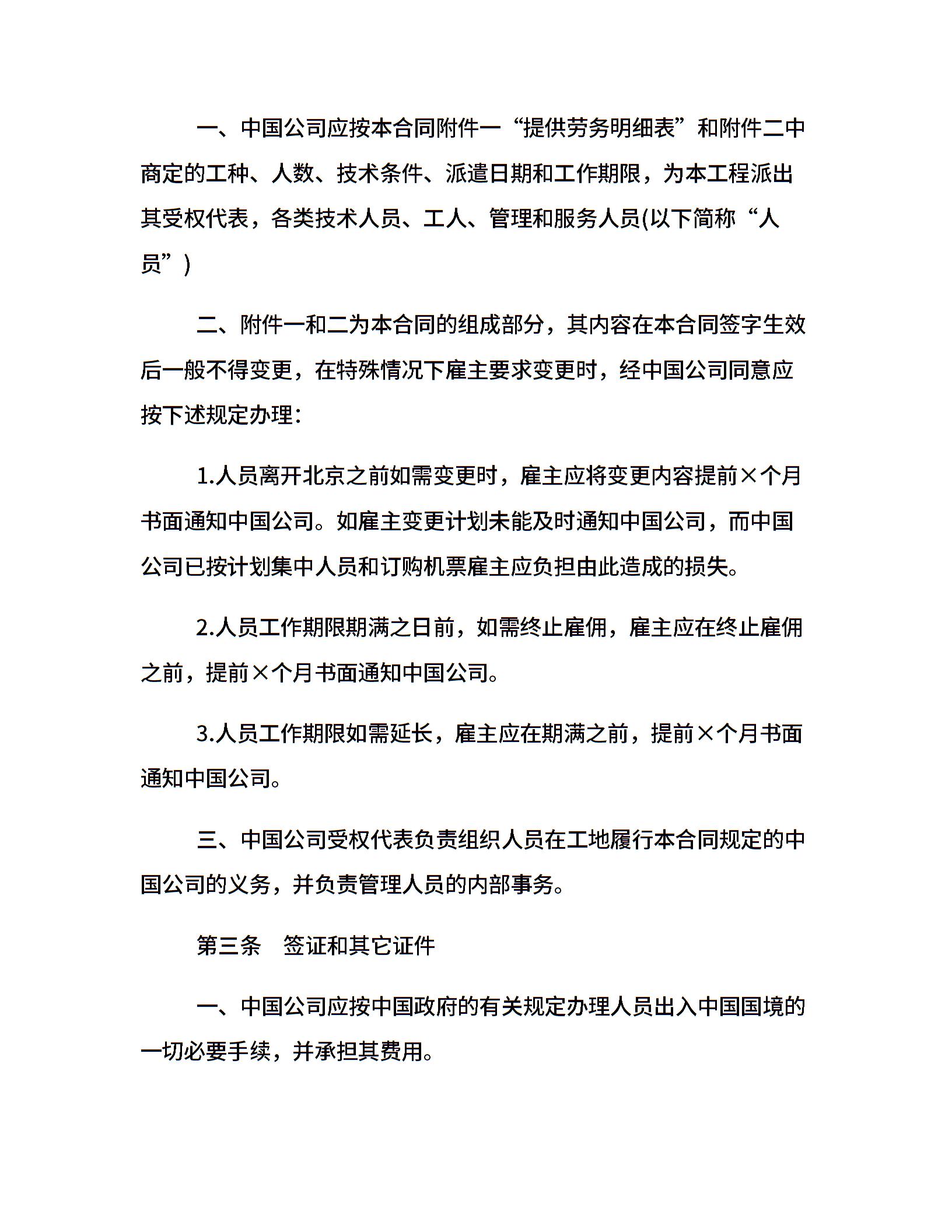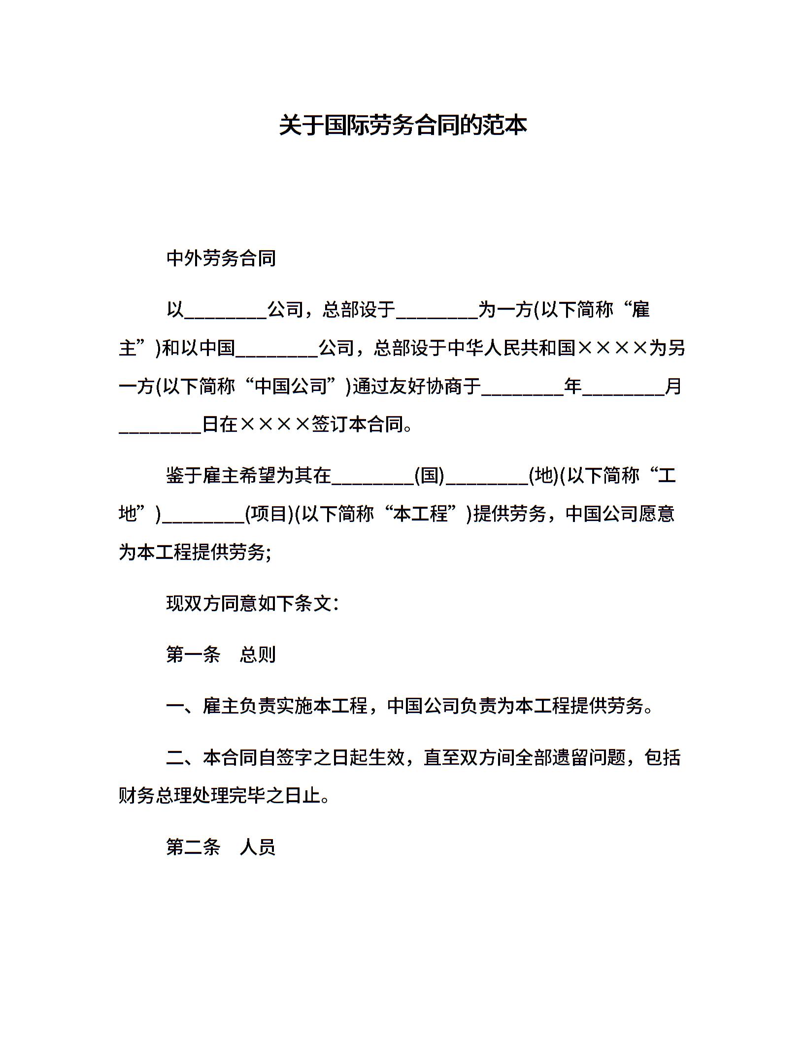 关于国际劳务合同的范本