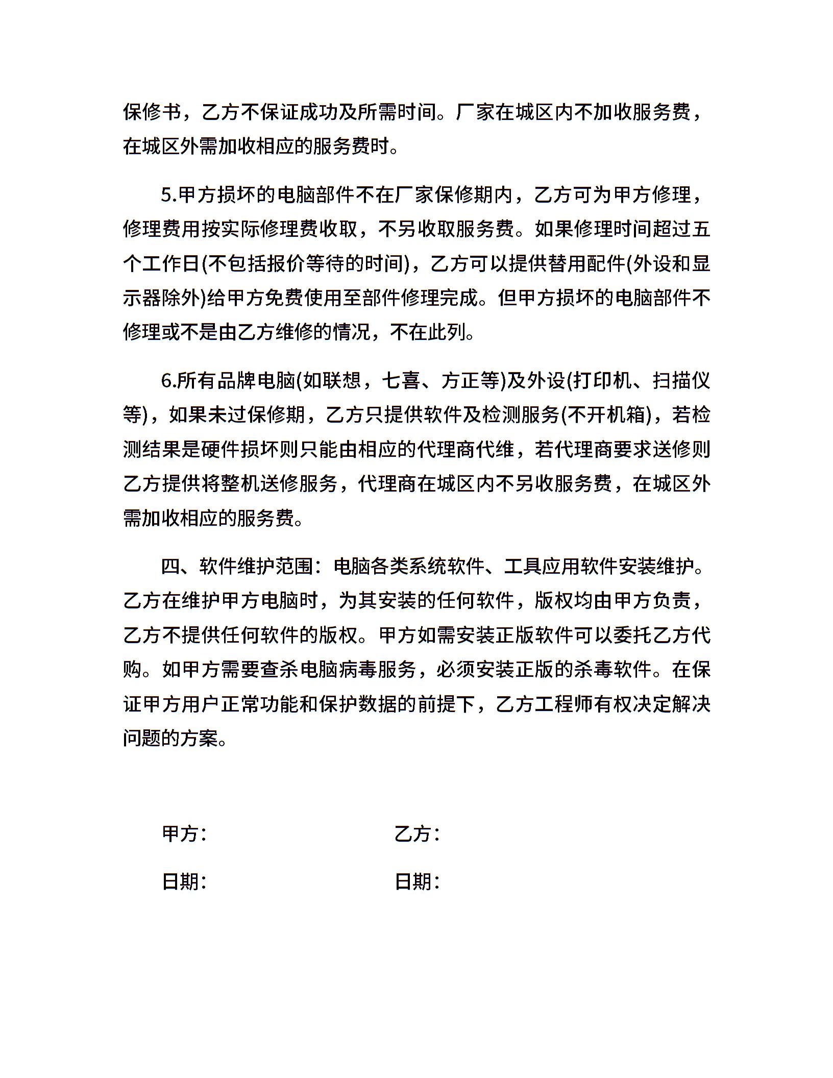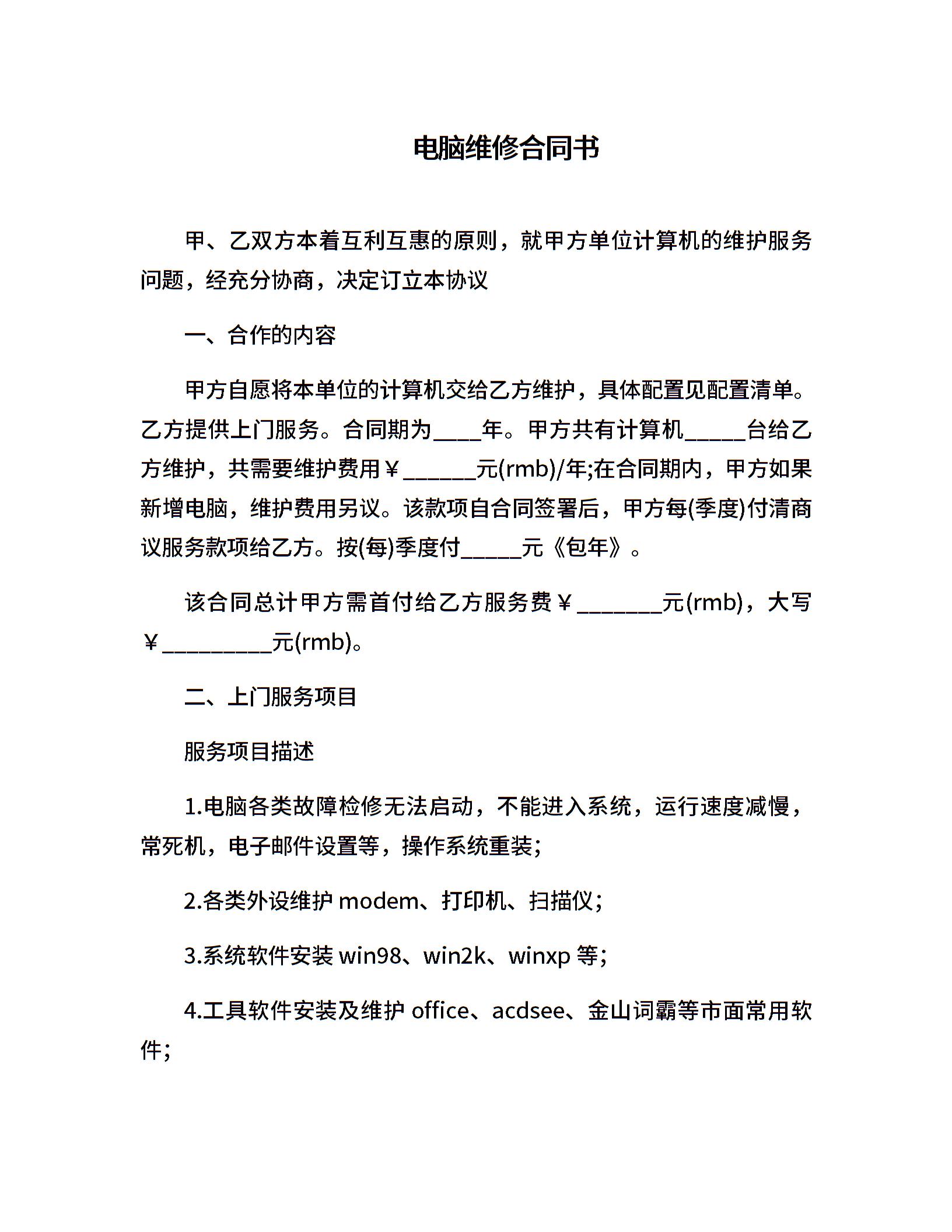 电脑维修合同书