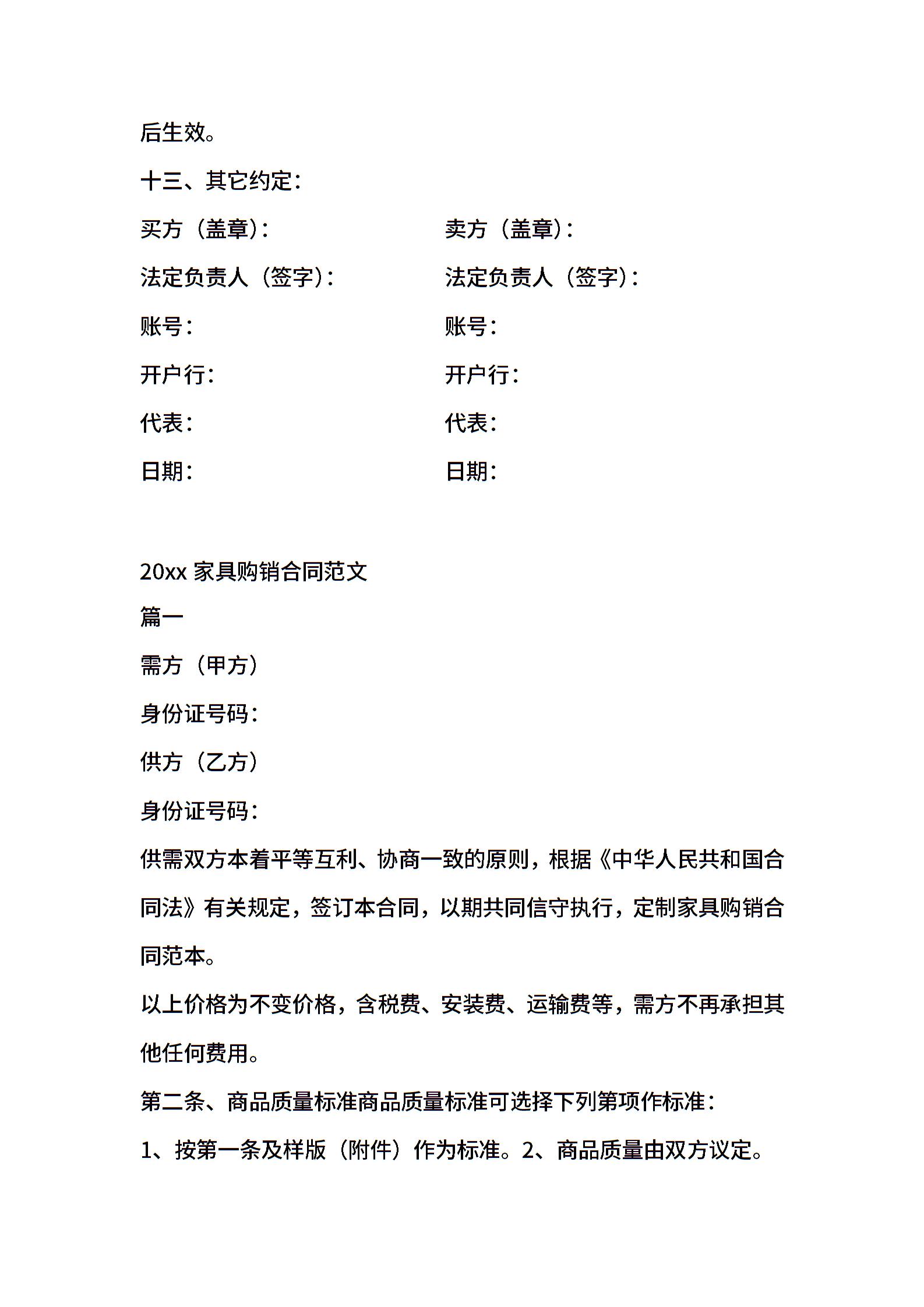 家具购销合同模板