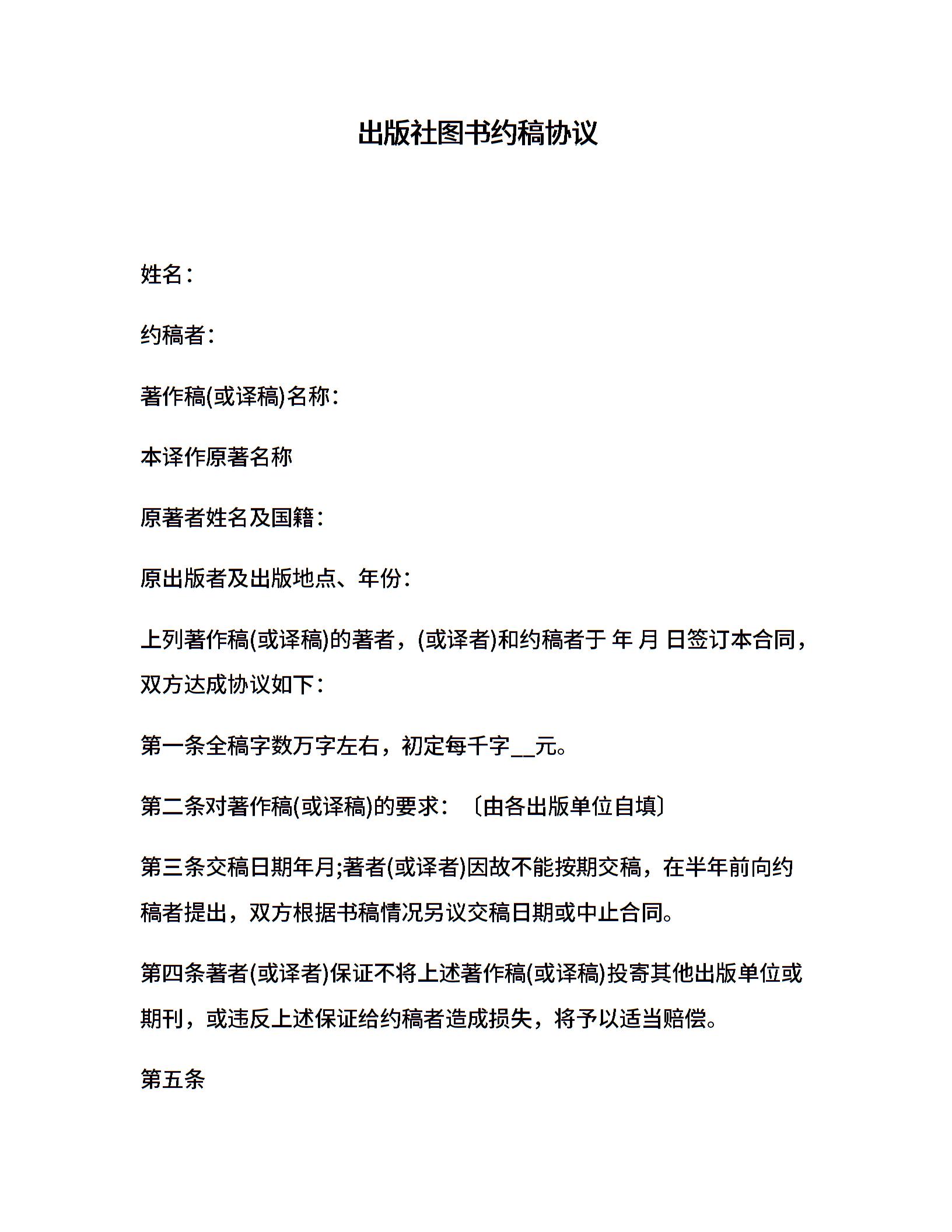 出版社图书约稿协议