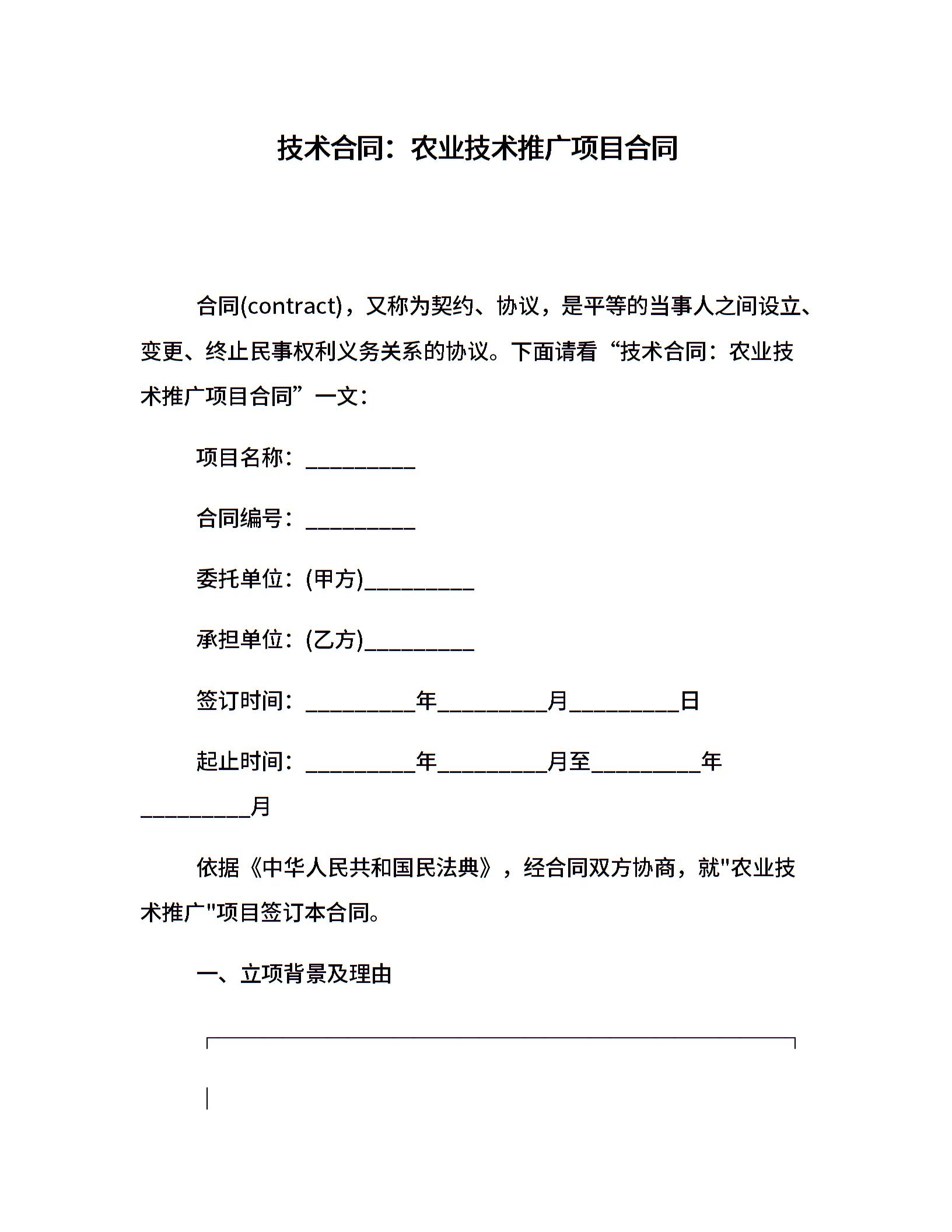 技术合同:农业技术推广项目合同