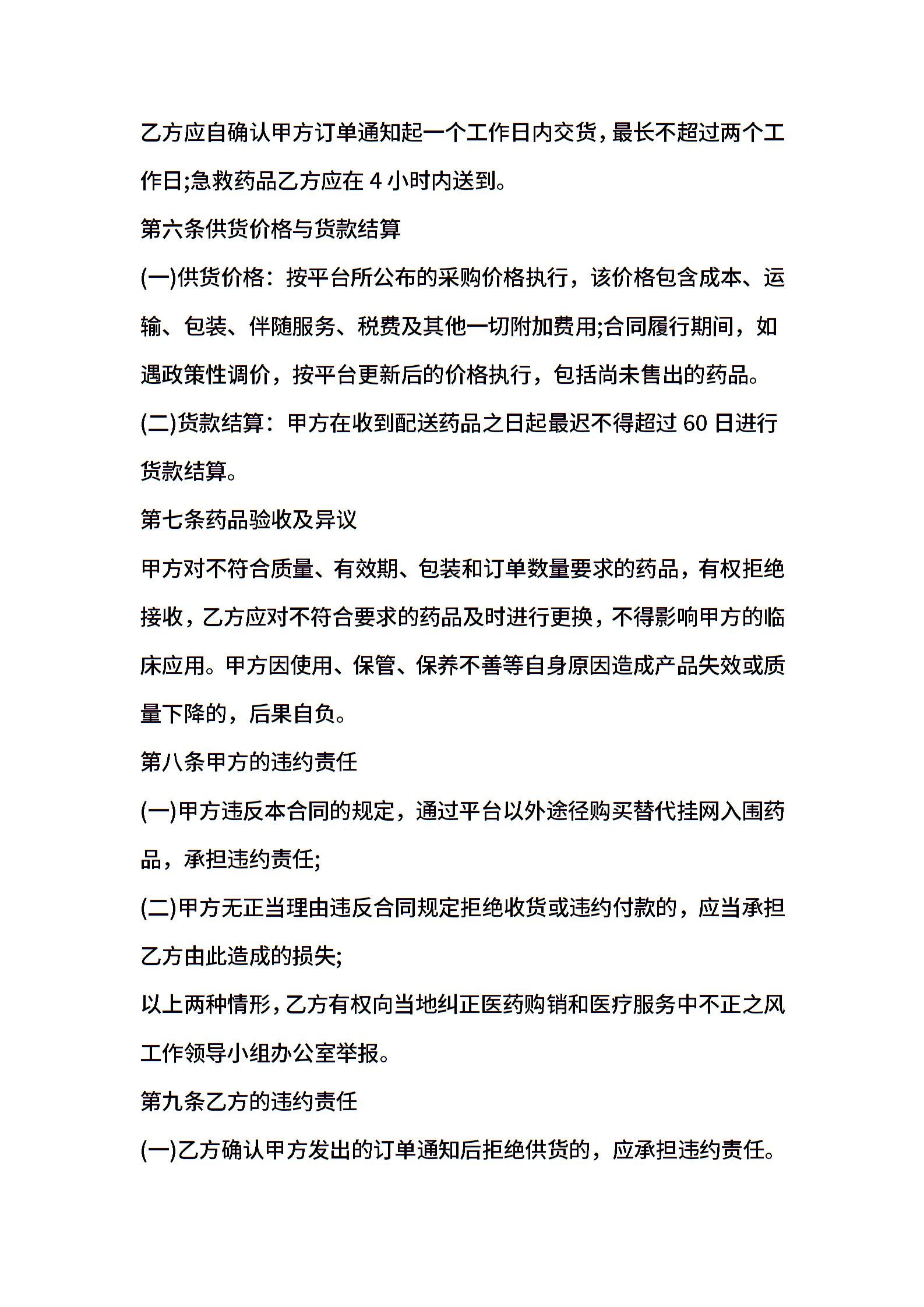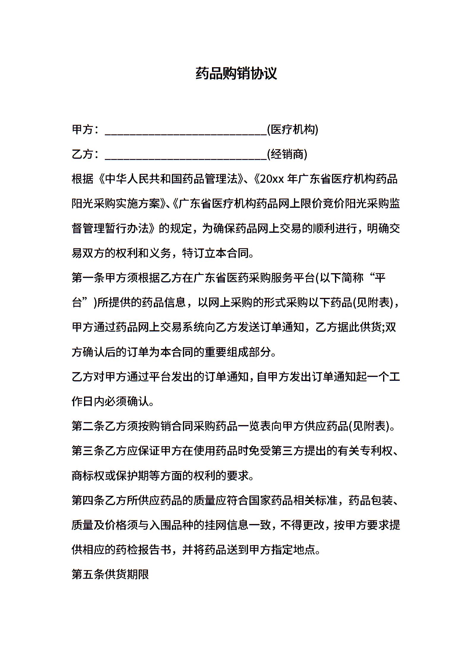 药品购销协议模板