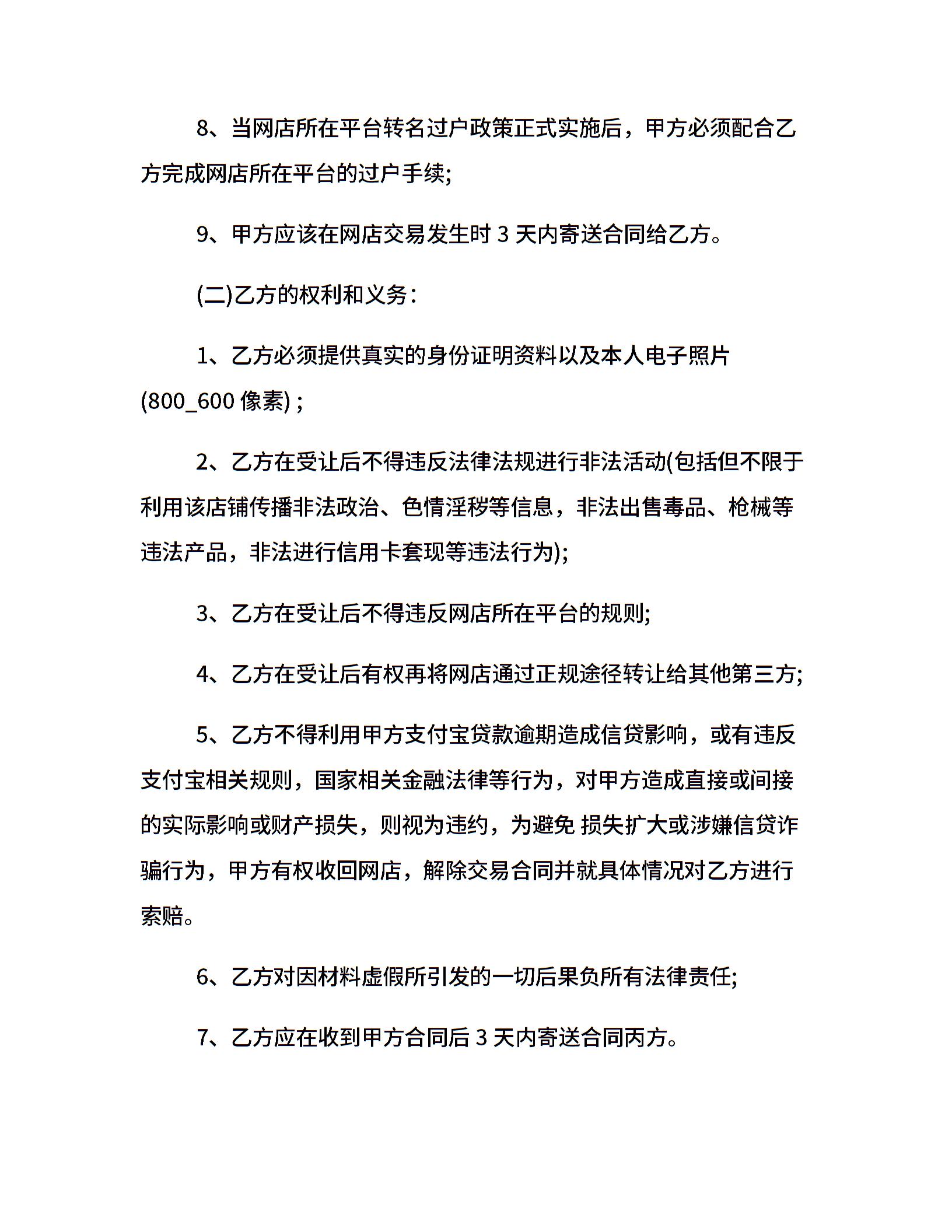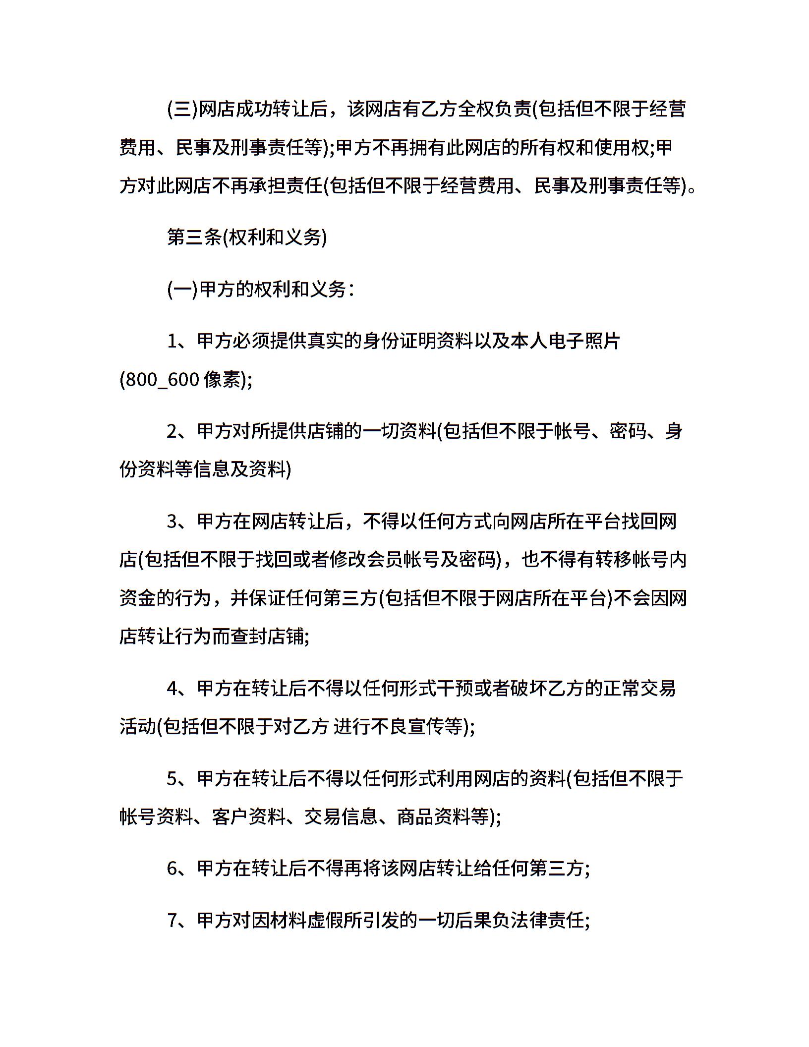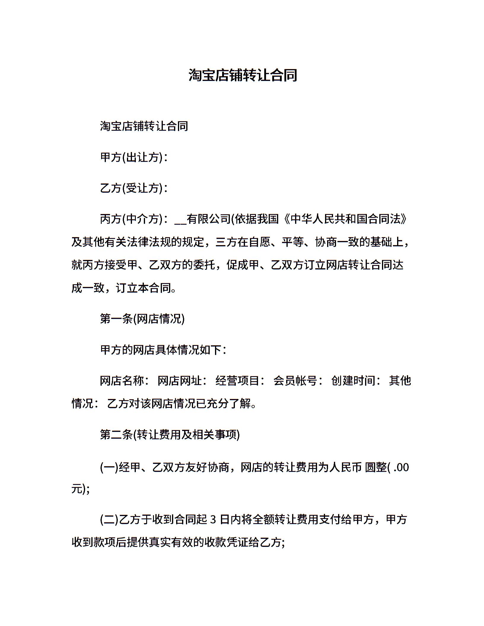 淘宝店铺转让合同