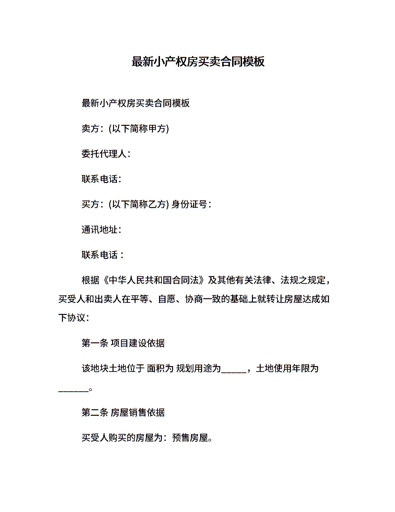 最新小产权房买卖合同模板