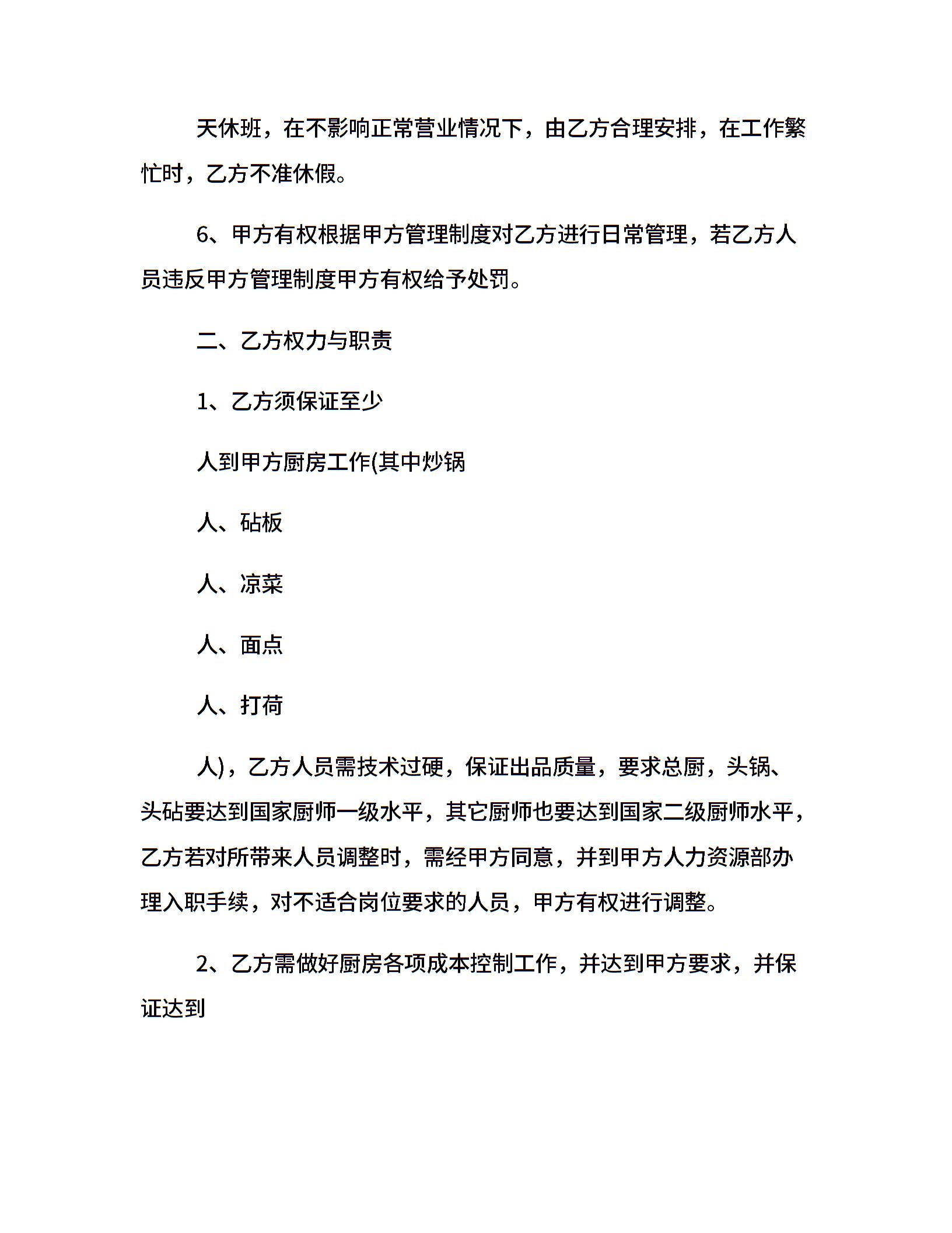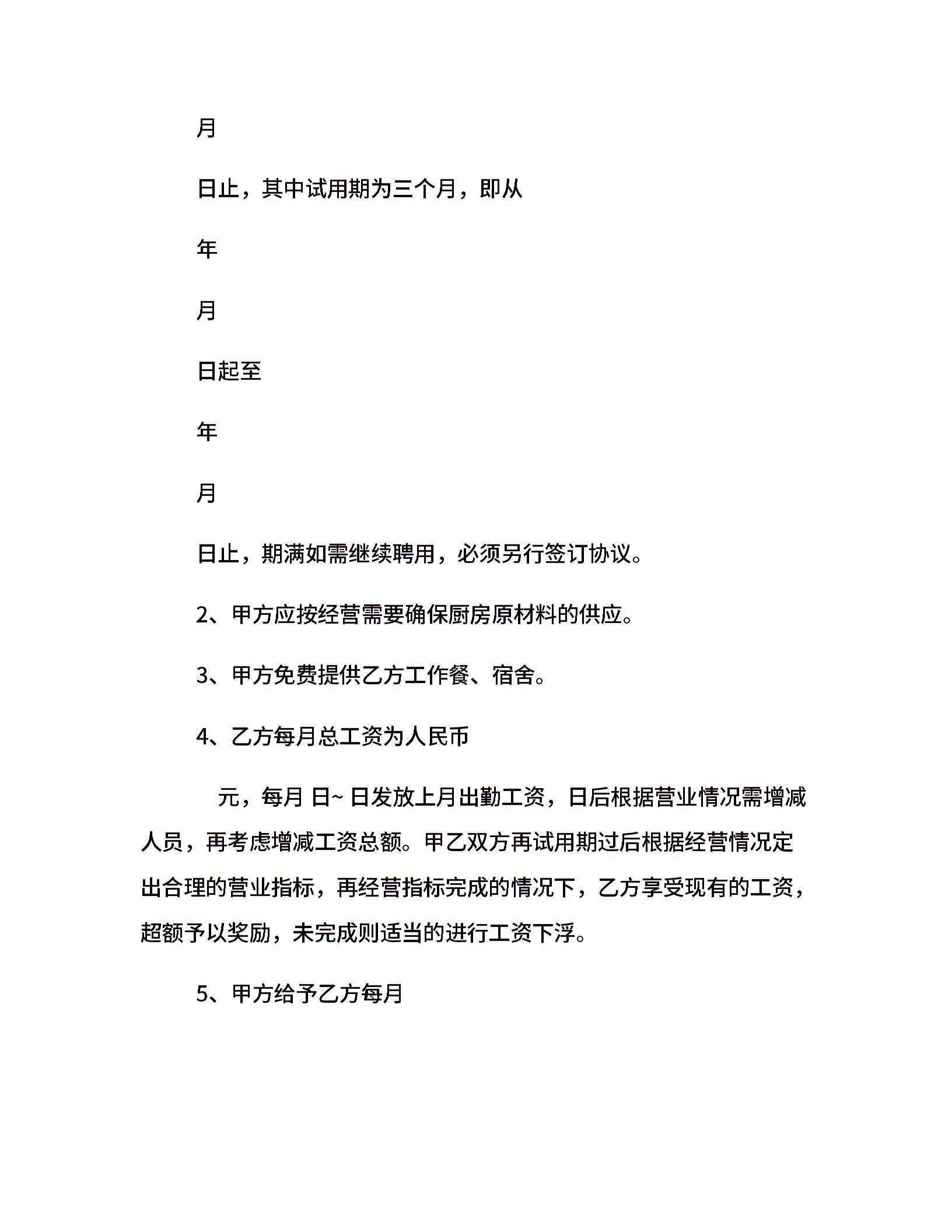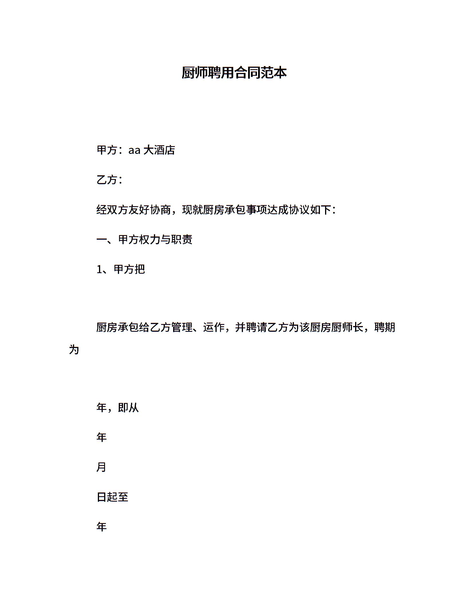 厨师聘用合同范本