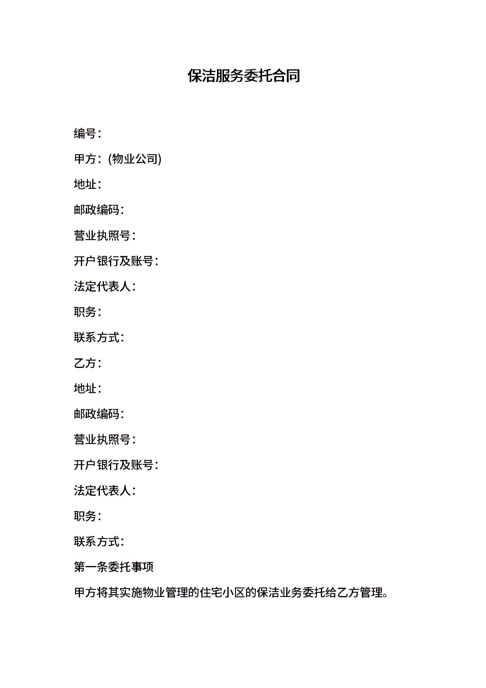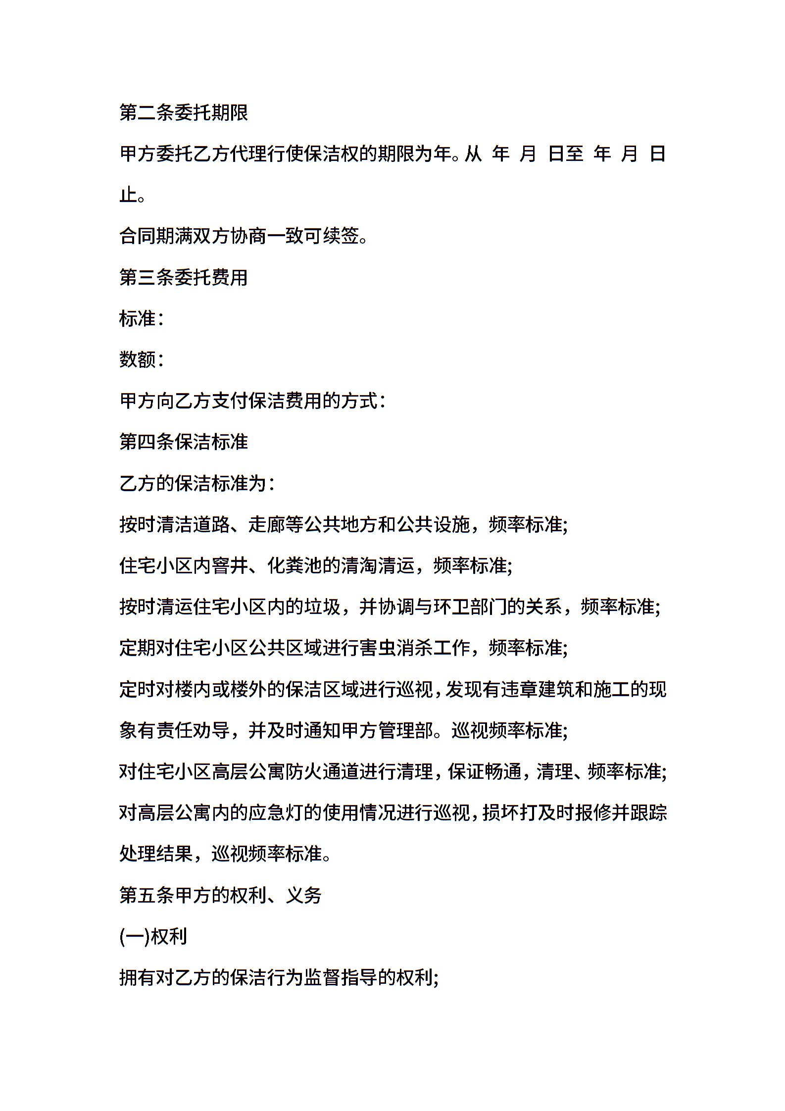 保洁服务委托合同范本