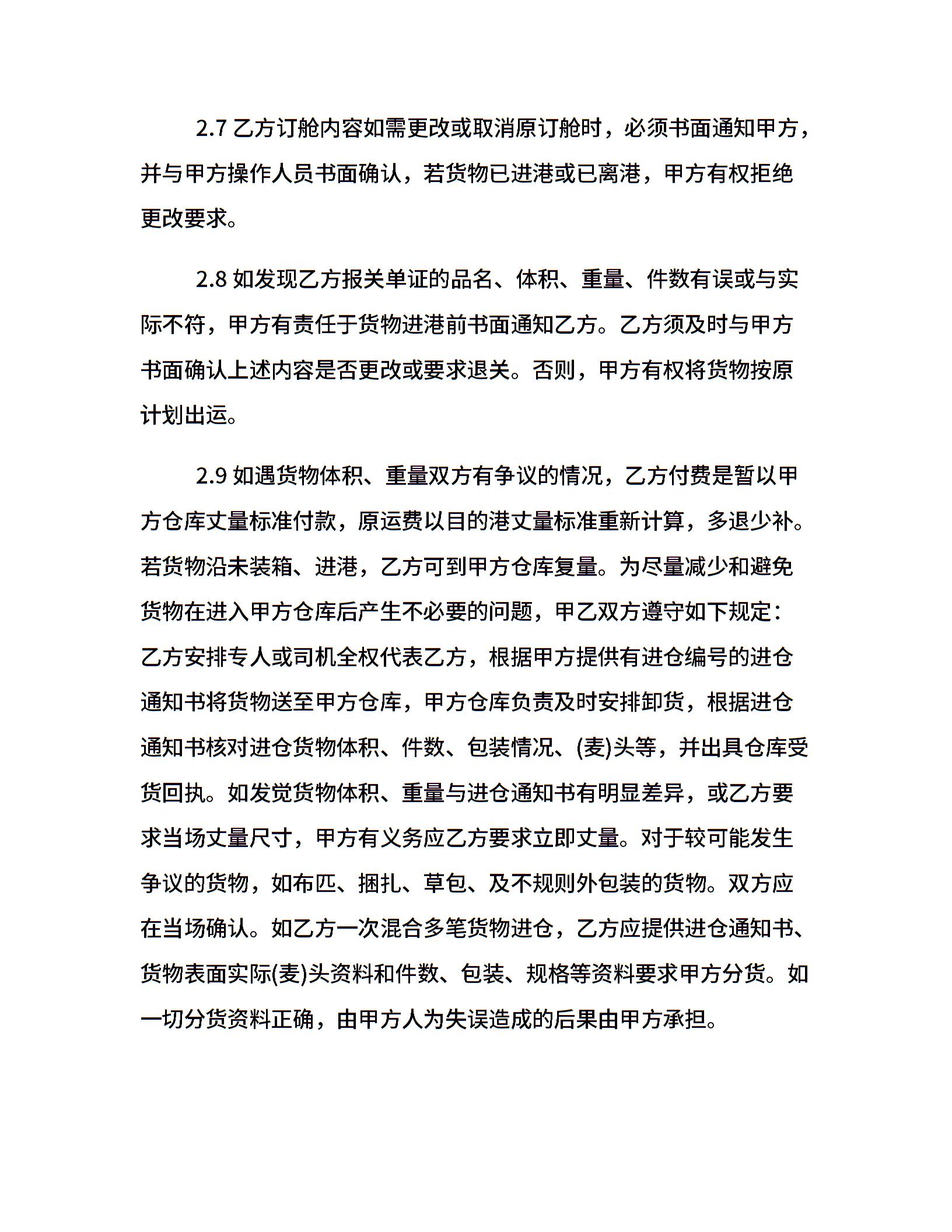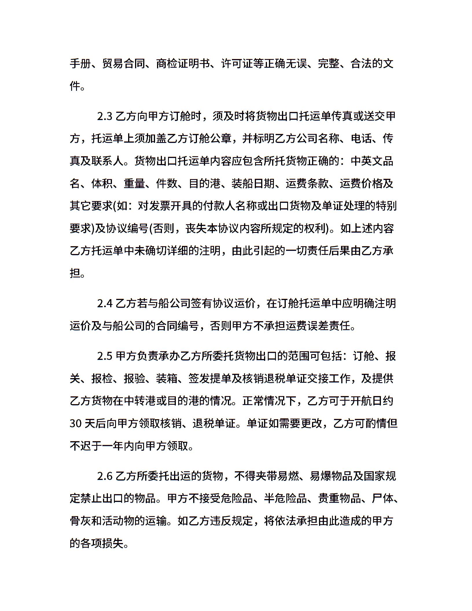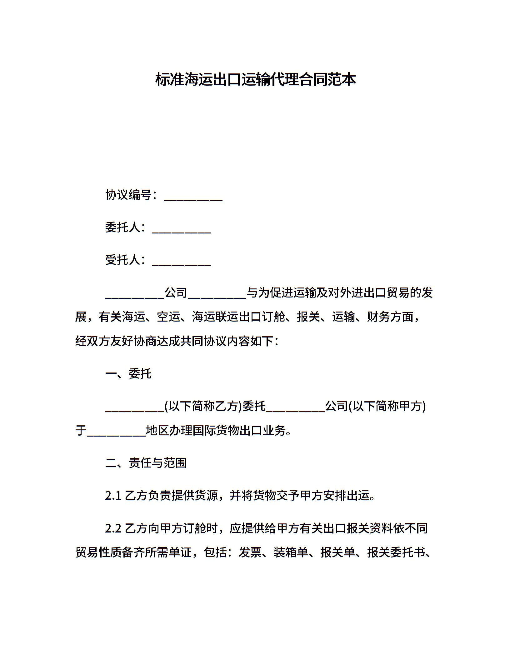 标准海运出口运输代理合同范本