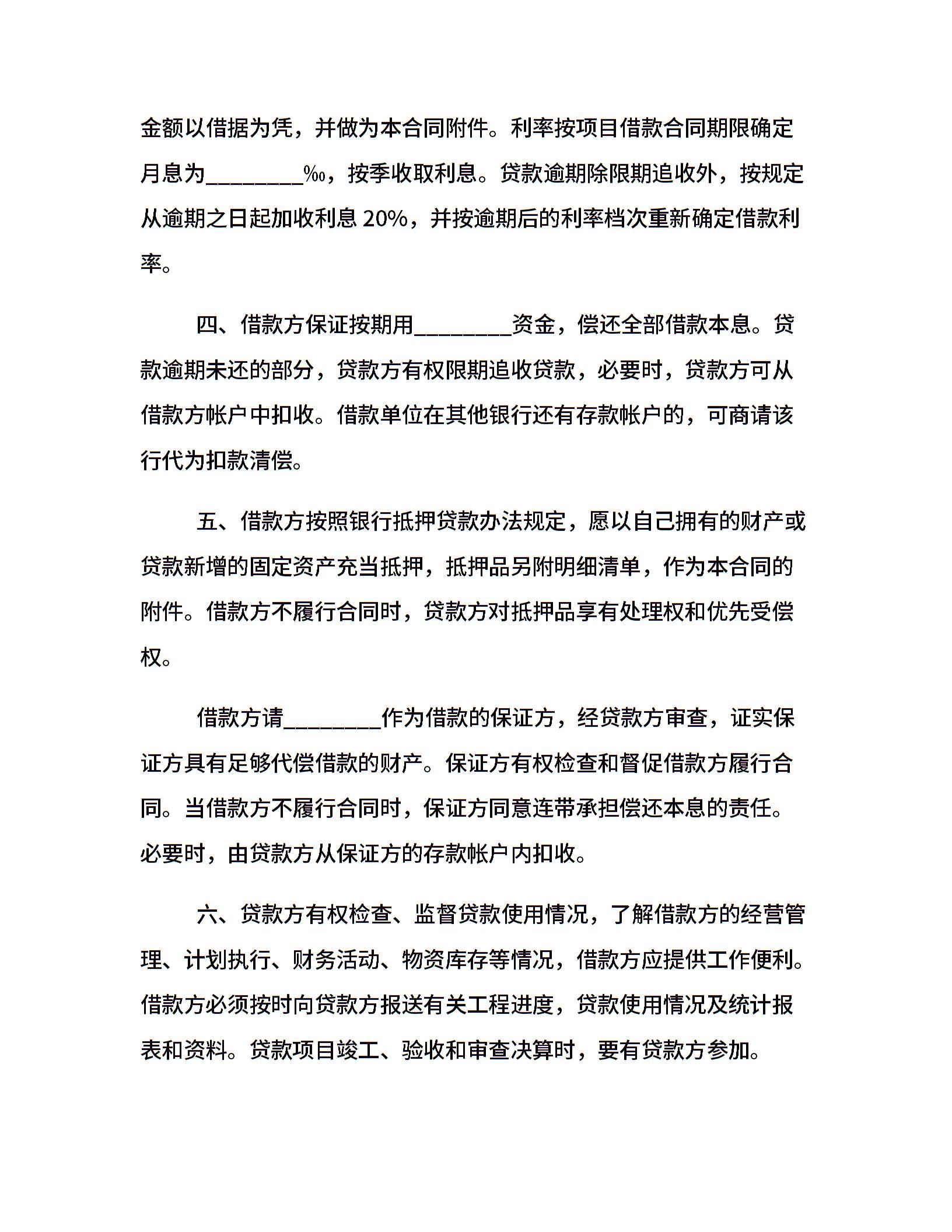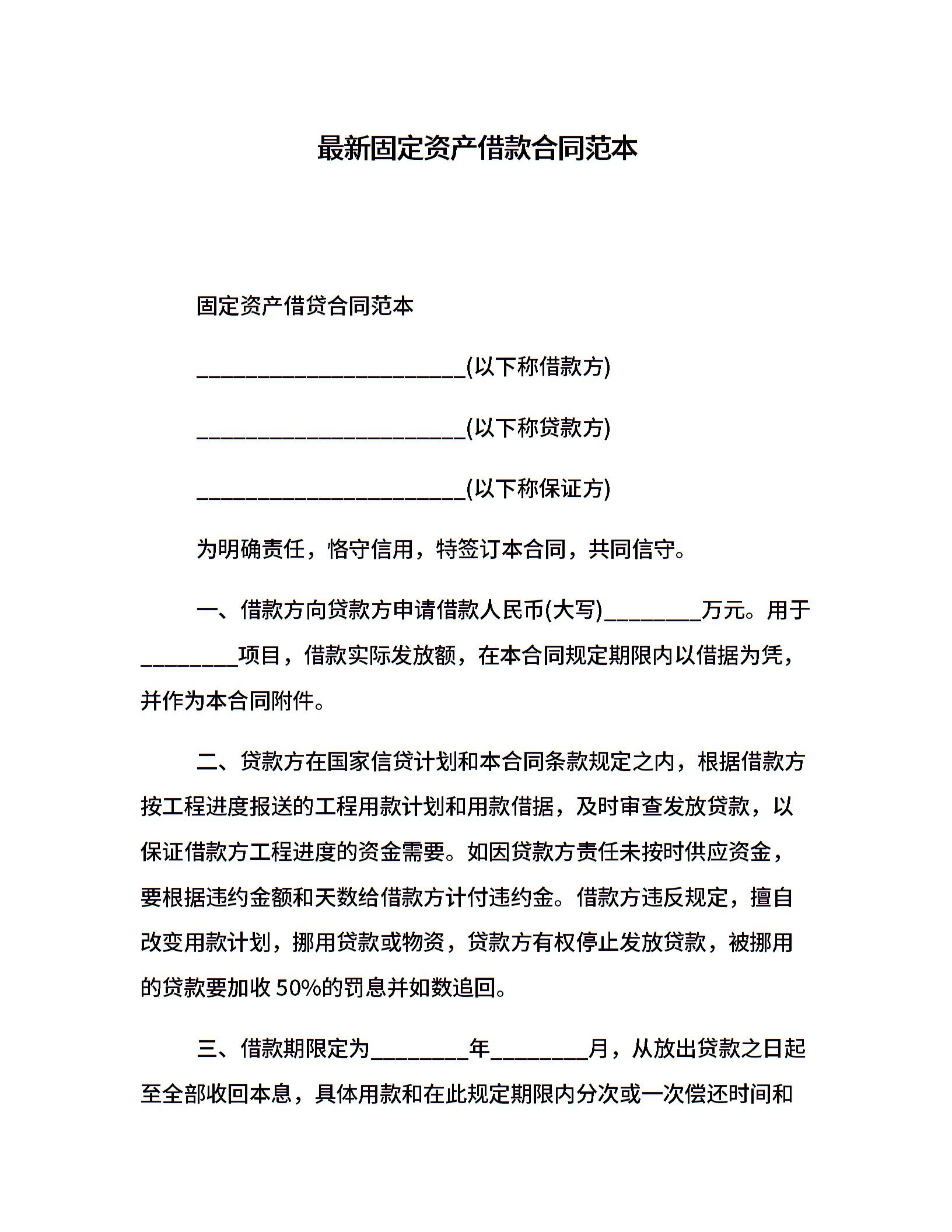 最新固定资产借款合同范本